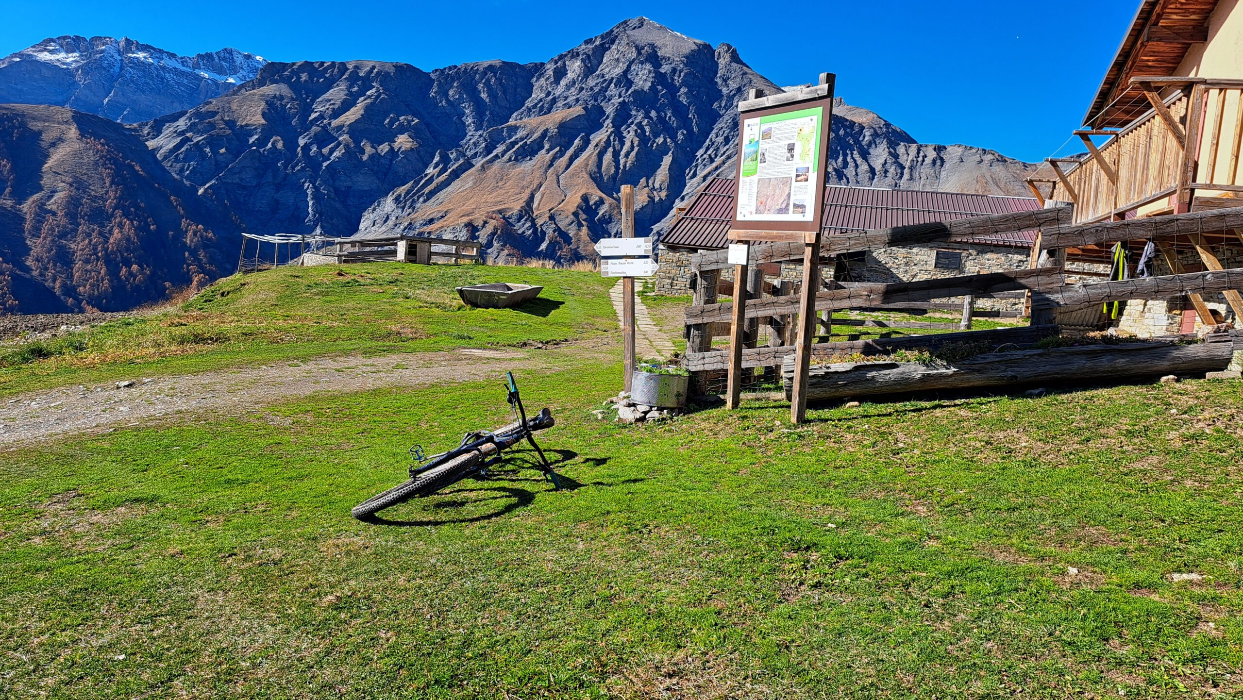 Si segue la sterrata, poi si svolta a destra su un ponticello (cartello ‘Sentiero delle borgate’ in alto su un pino). A questo punto si segue la sterrata, si oltrepassa la Croce Chabriere e un ripetitore (q.2250 m) e si lascia la sterrata nei pressi di un colletto posto a breve distanza dalla vetta della Melmise. (1 min. a piedi).