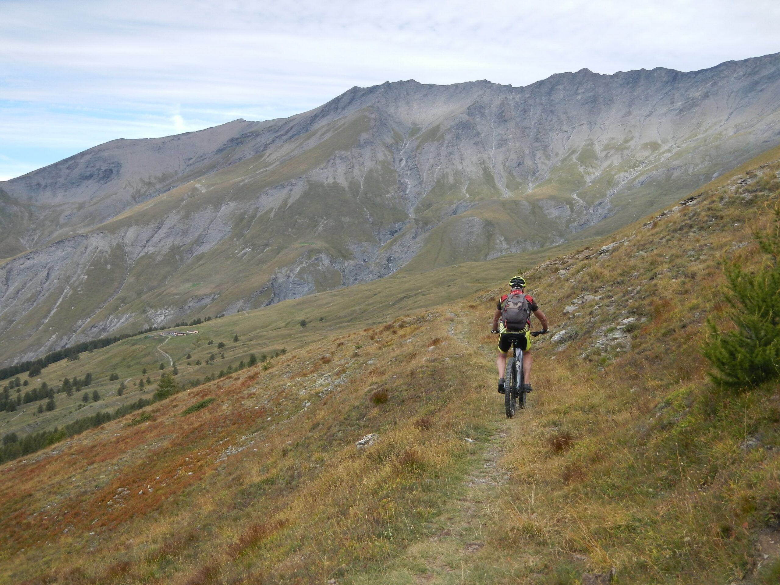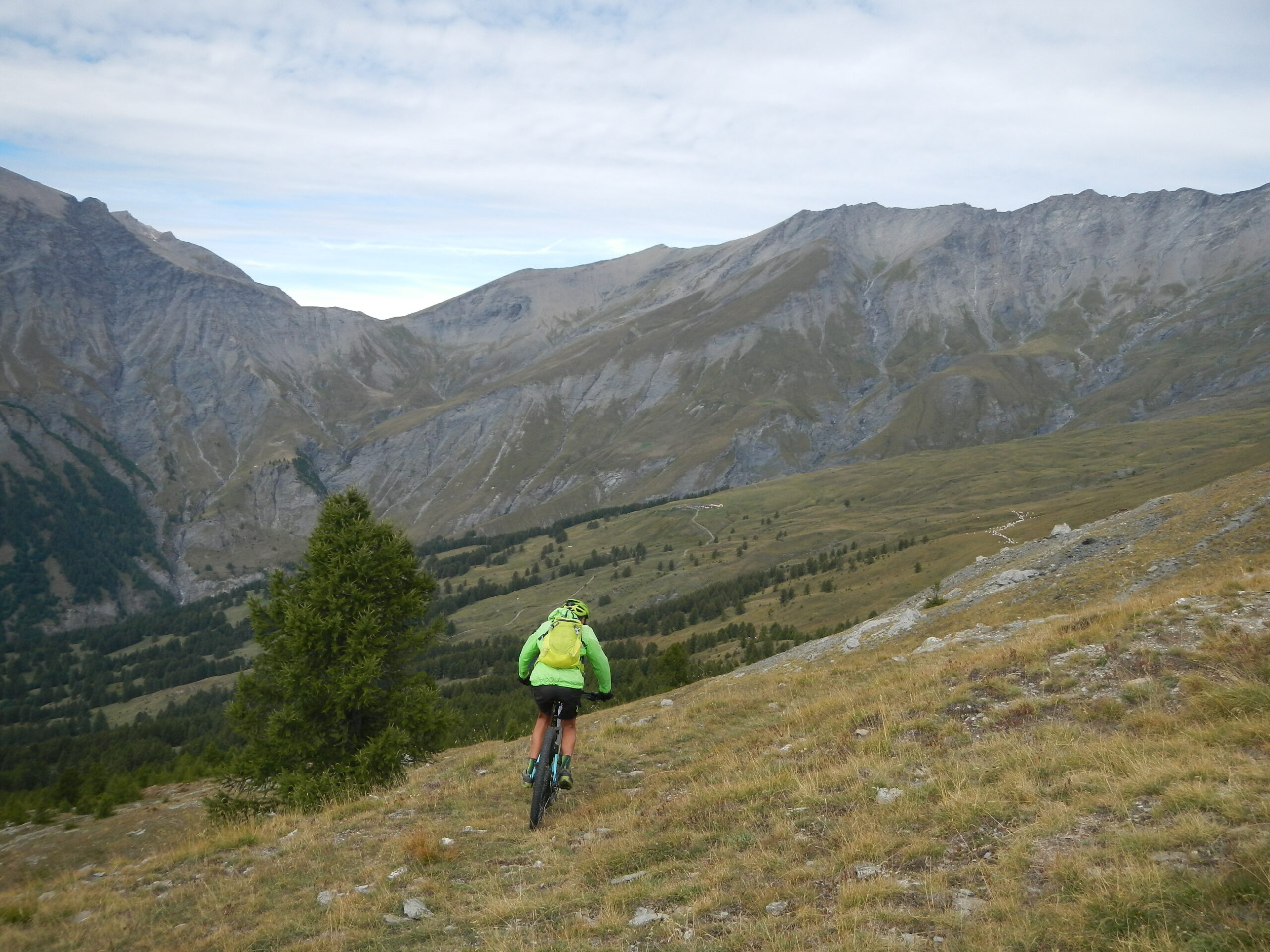 La discesa verso il Pian delle Stelle è scorrevole nella parte alta poi su sentiero o per prati si raggiunge senza problemi l’Alpe Pian delle Stelle; lo sterrato verso la Borgata Chaffaux in più tratti presenta pendenze sostenute.