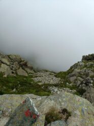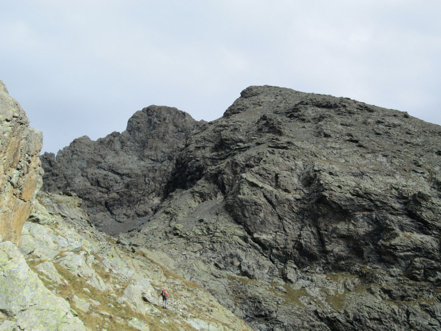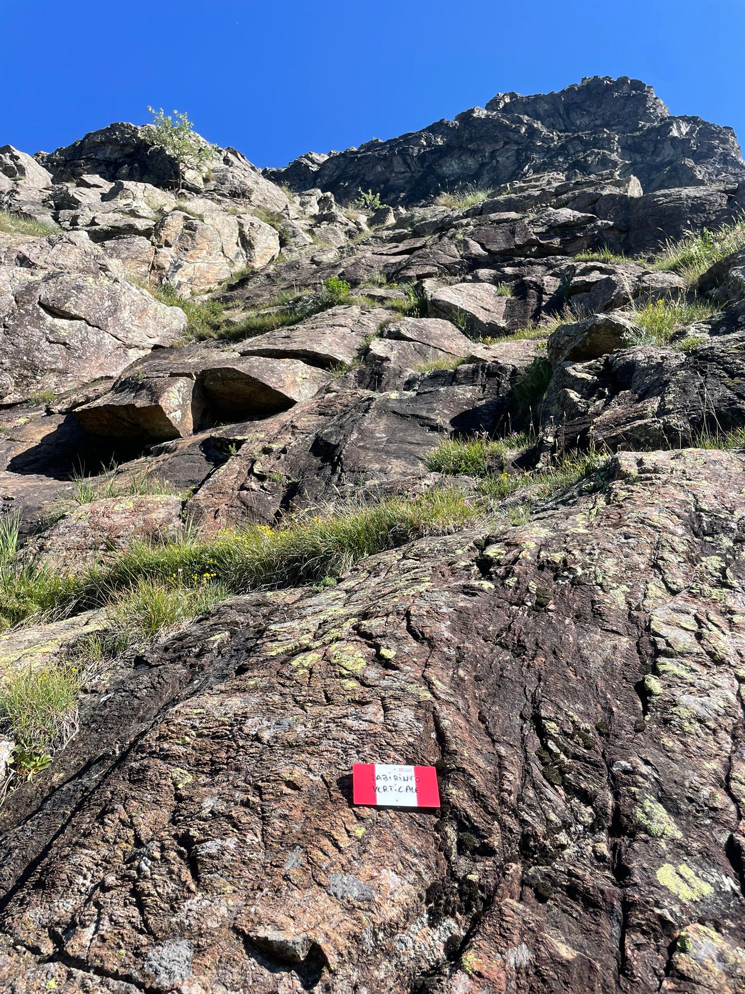 - 2. Tornando fino a quota 2358m ed imboccando la “normale” da Balme (franosa e ripida ma ben segnata con tacche rosse e bianche (EE).