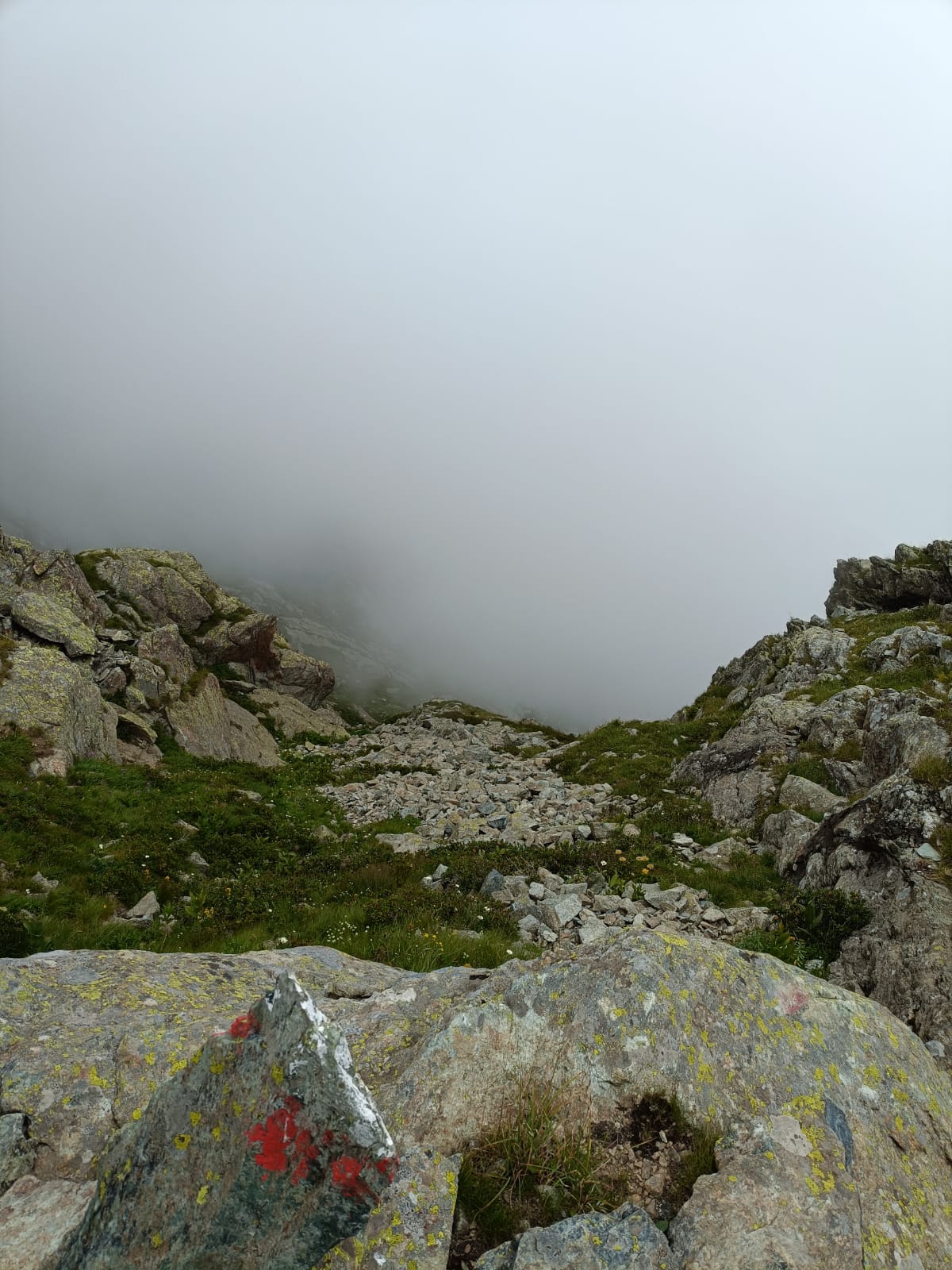 Di qui per terreno più facile su fino ad incrociare il sentiero che sale da Balme (2358m).
