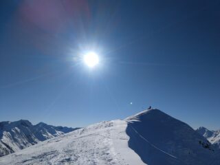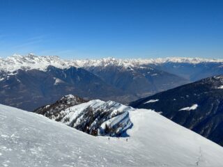 Raggiunto il colle, si gira verso sud: si esce dal bosco e poi c’è la cresta fino al pizzo.