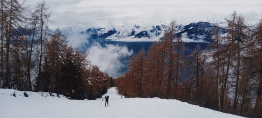 Partito alle 13. La neve comincia poco prima di Campelli. Buon innevamento su tutto il percorso. La neve si sta piano piano trasformando. Verso la cima cominciava ad essere un po collosa ma si saliva bene con poco zoccolo. Mi sono fermato a quota 2100 perché la cima era tutta tra le nuvole e non volevo dover scendere con visibilità nulla. Ottima sciata.