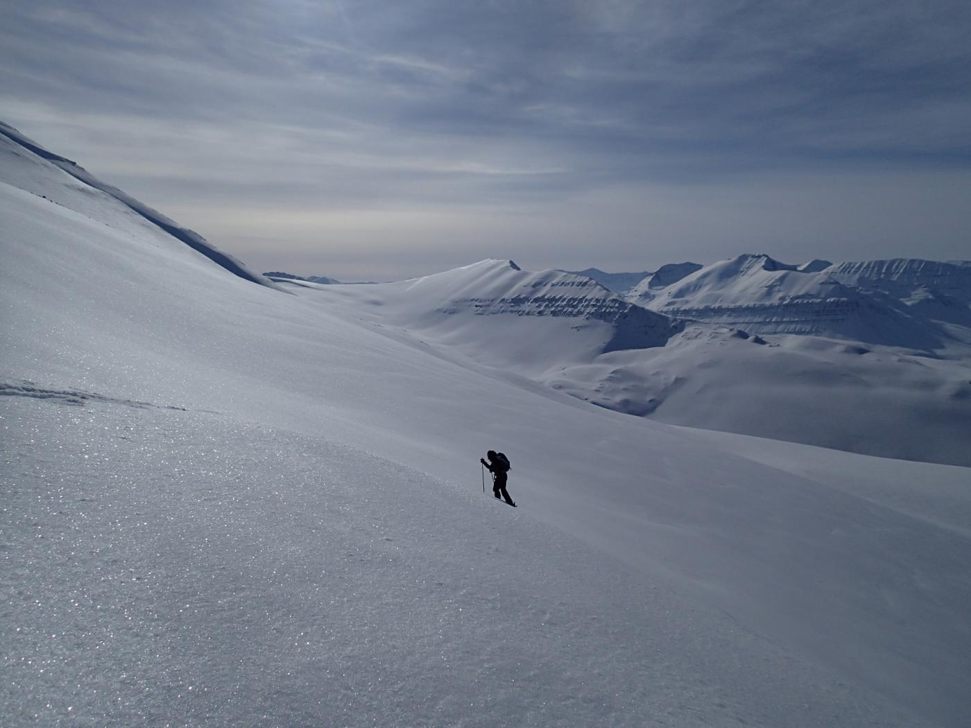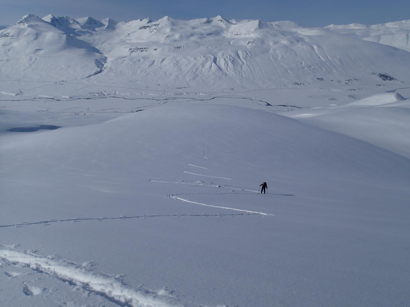 Salita su pendii ampi e variegati, con pendenze moderate.