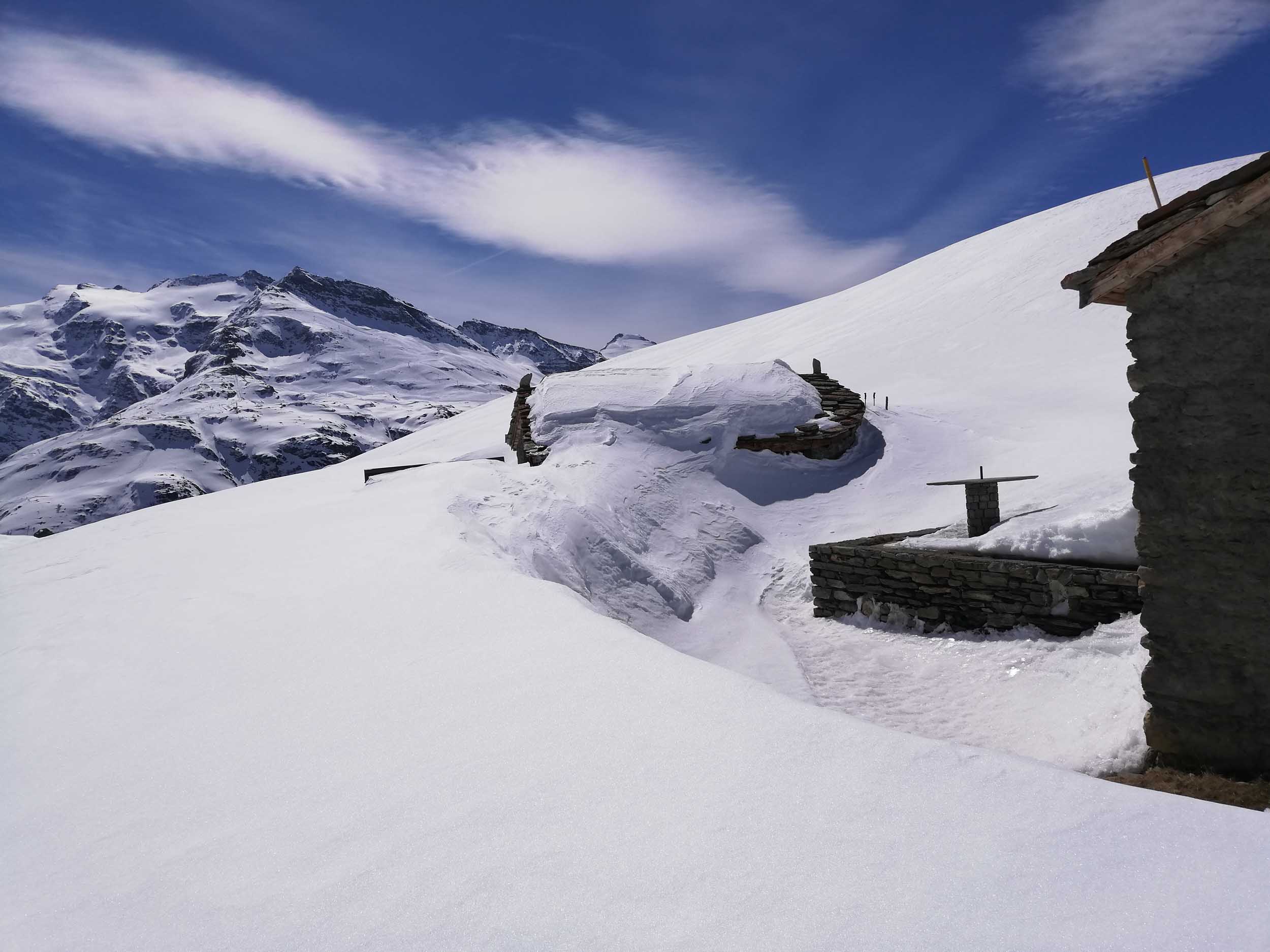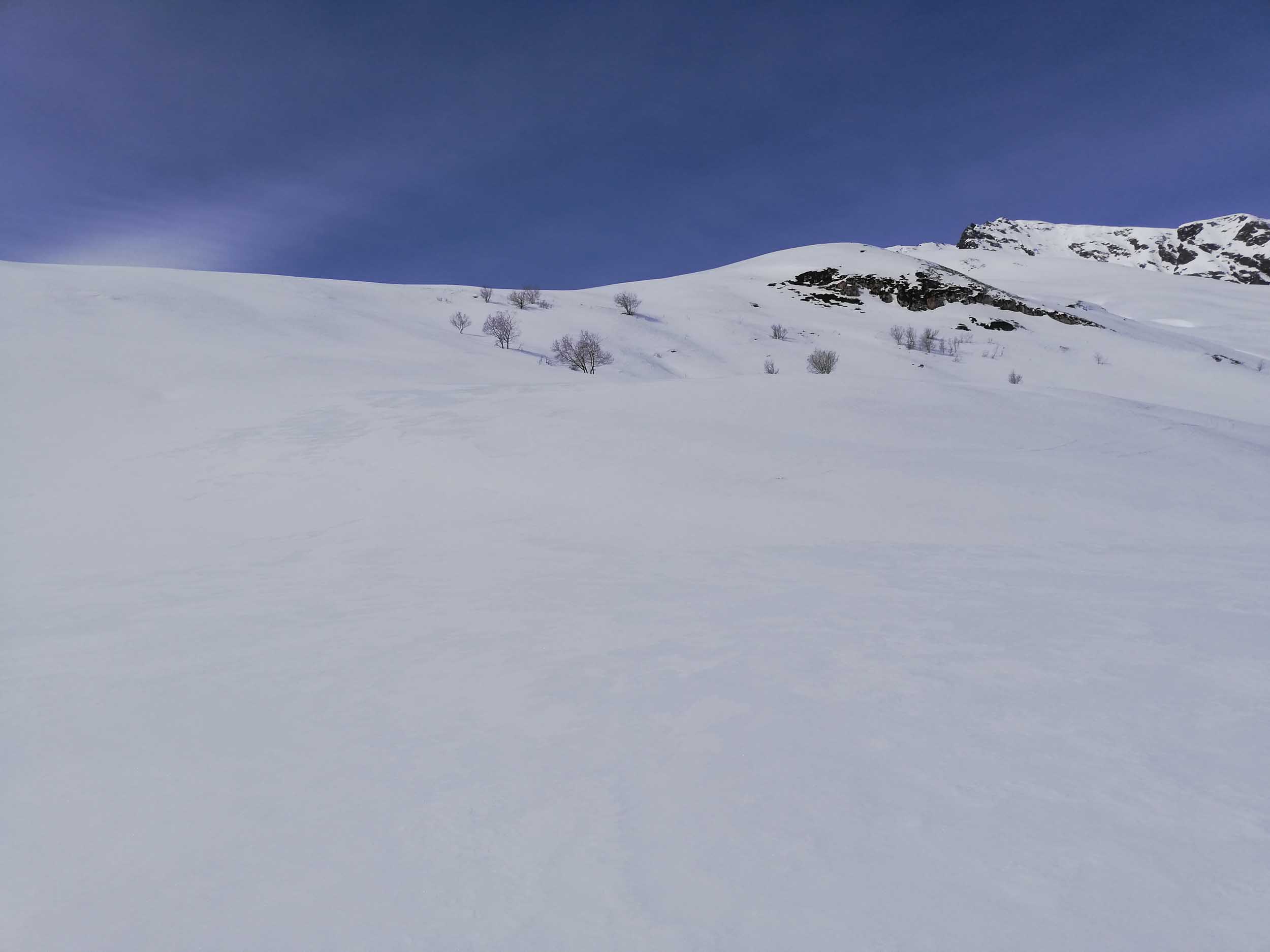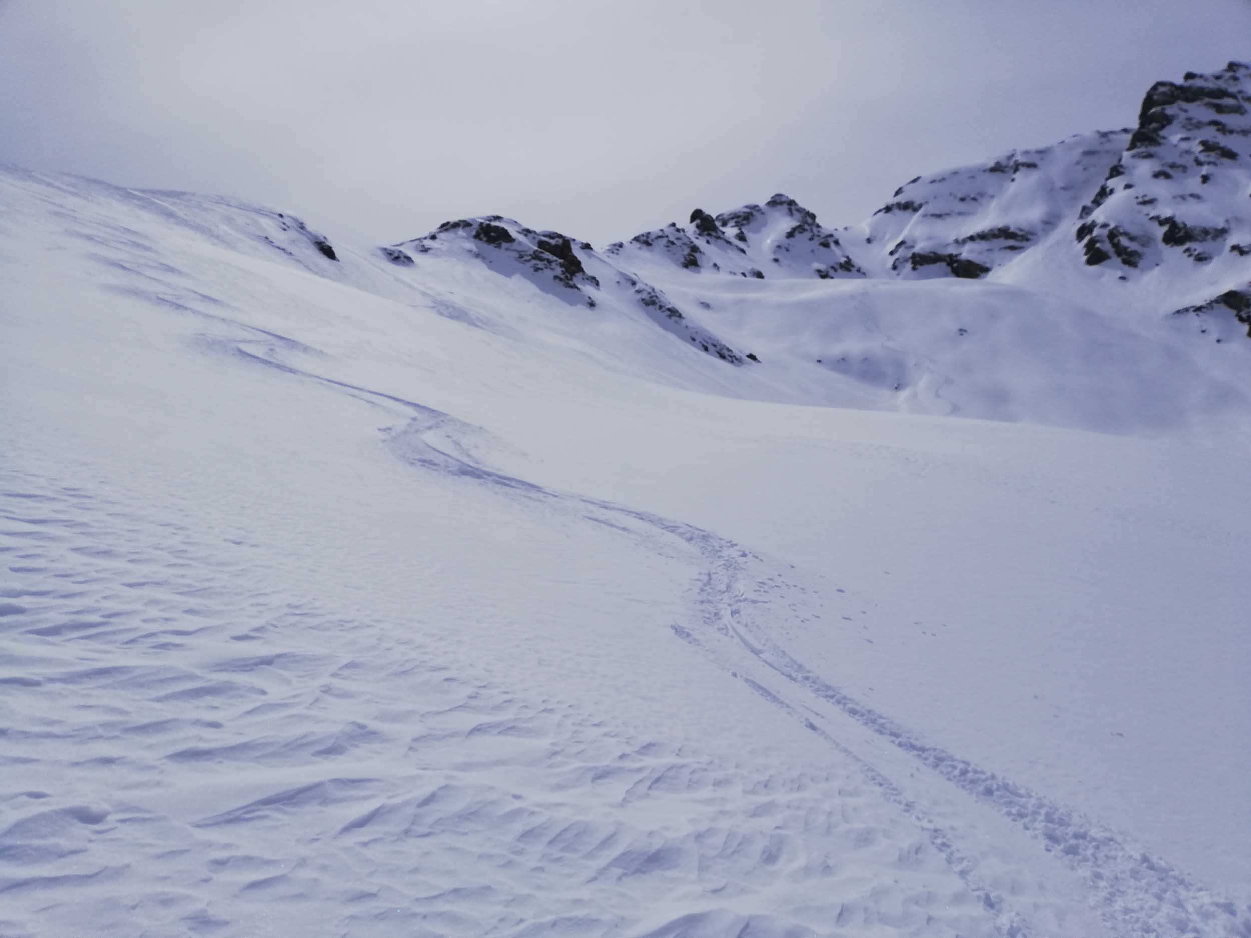 Dal ponte tutto il valloncello della Met è ben innevato; c’era una traccia dal canale Est tutto in perfetta farina; incontrato dei francesi che arrivavano dal Fond des Fours e che scendevano dal canale des Fonds i quali mi hanno detto che aveva dei residui delle colate laterali; un pò rovinati dalle colate i canali Tretetes-Jave.