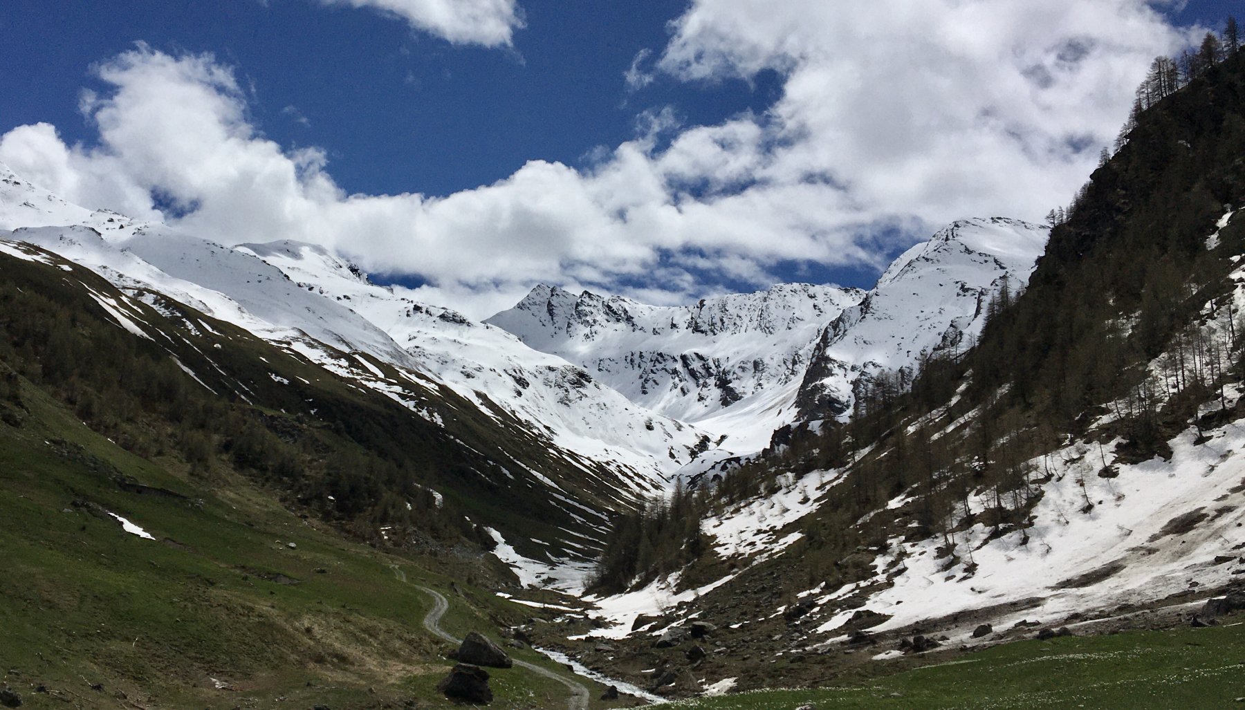 Tralasciato il bivio per Troncea si continua sino al termine della carrozzabile all’Alpe Mey m 2047.