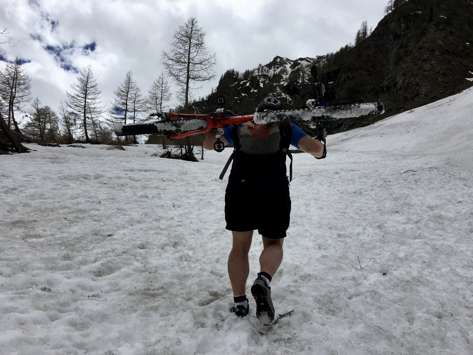 Dalla fontana Landeniera sono presenti grandi coni di valanga che coprono a tratti la sterrata, 3, 4 sali scendi e un portage di qualche minuto ma niente di che.