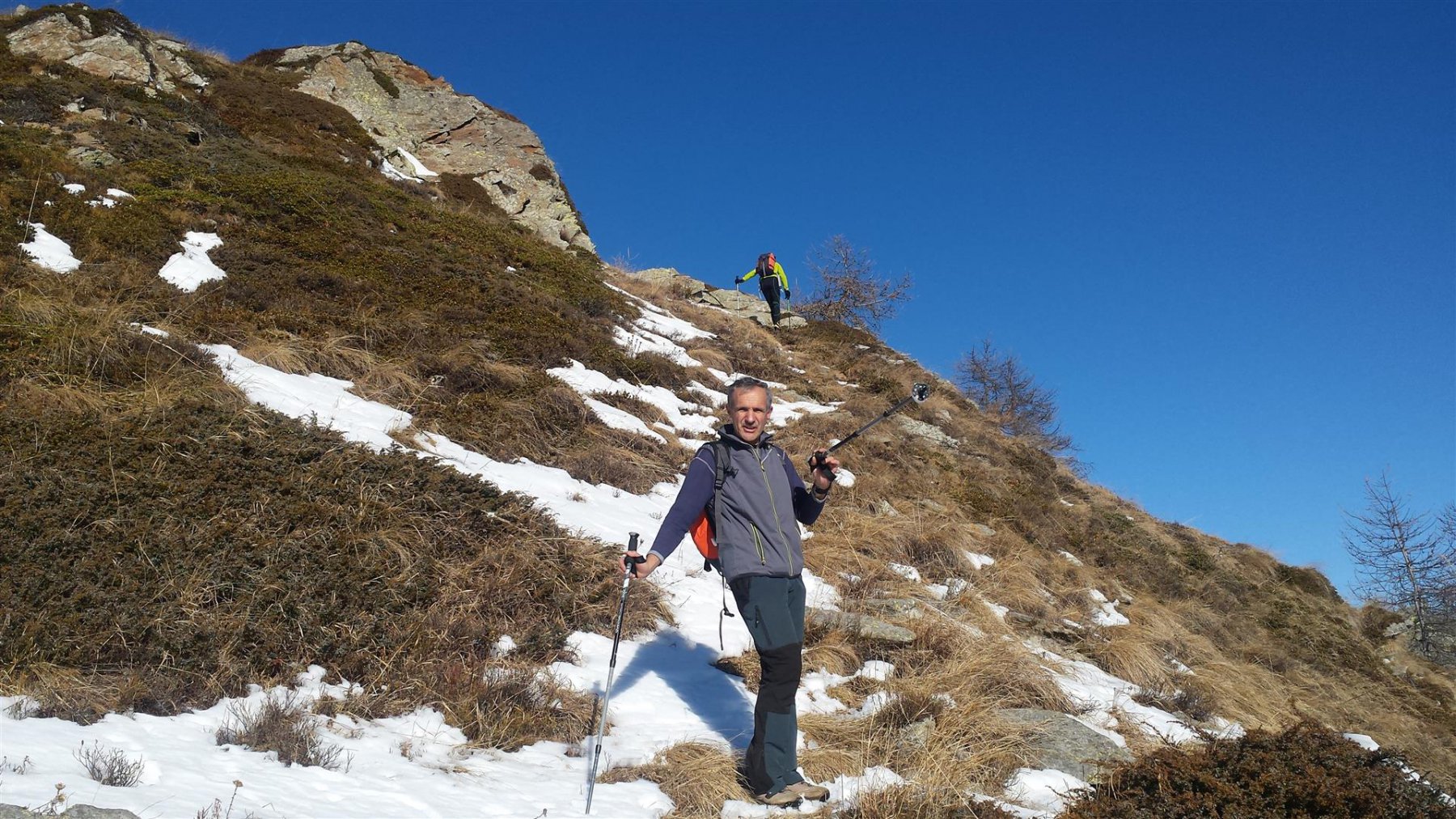 Per la discesa si scende al meglio sull’ampio pianoro sottostante a sud, dove si vede un buon sentiero che va verso est.
