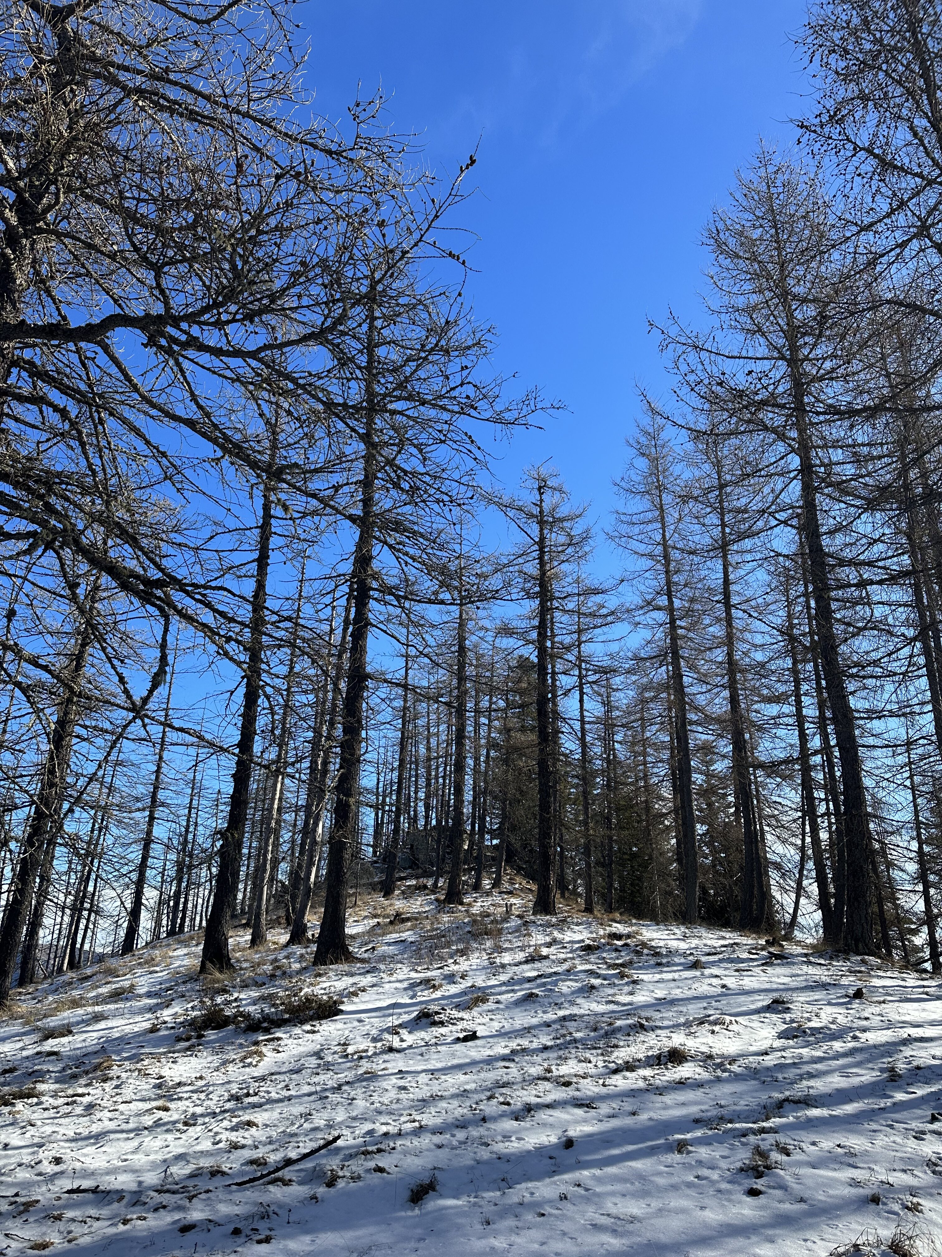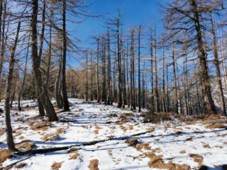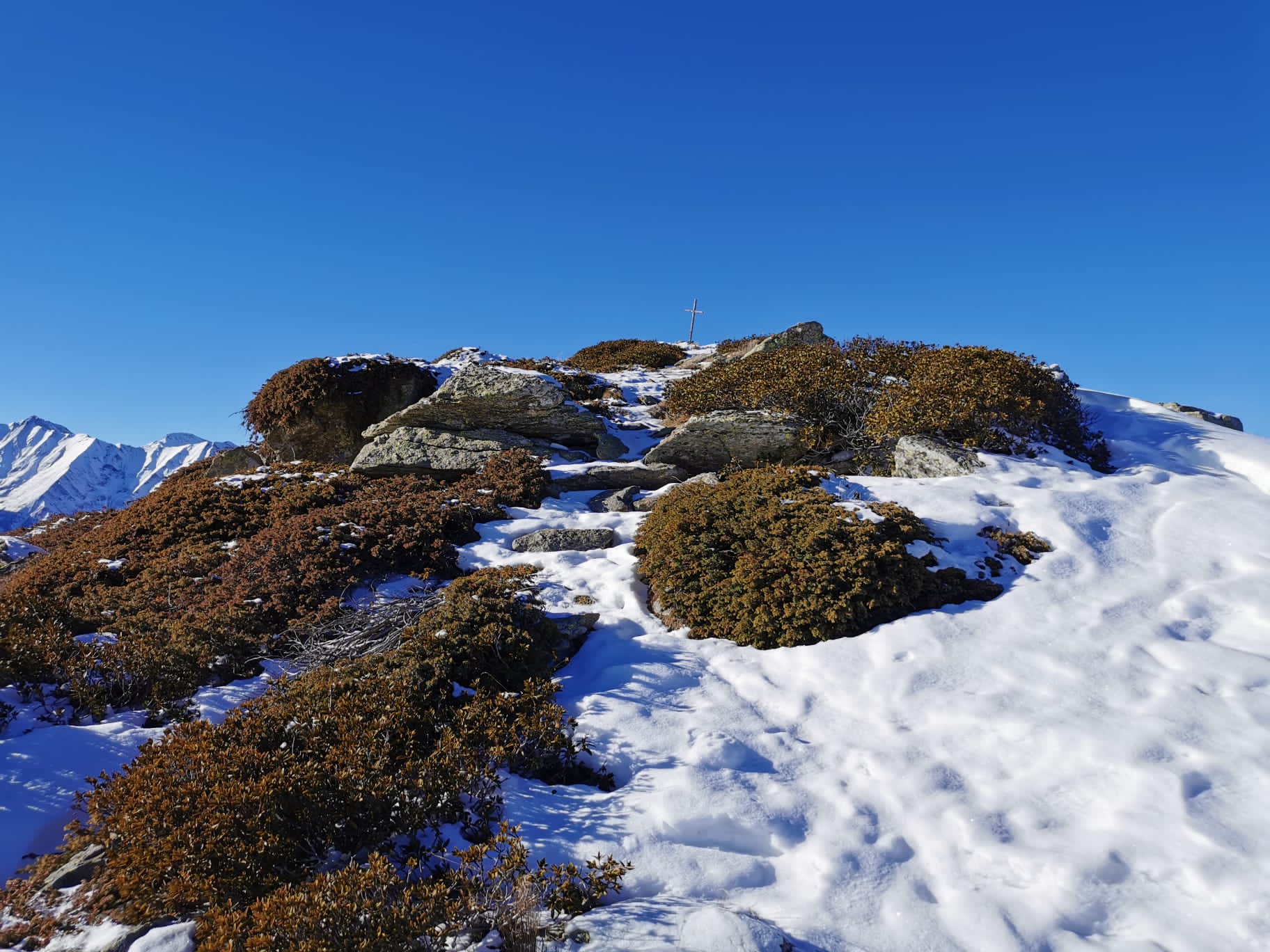 Fino al colle della Buffa si sale su comoda mulattiera poi il sentiero è lineare fino a quando la cresta si stringe. Da lì si prosegue su una debolissima traccia di sentiero a tratti franata però tenendo come riferimento la cresta è sempre intuibile la direzione da prendere. Aggiunto qualche ometto dove possibile perché non se ne trovano più molti. Ad oggi la poca neve presente non ha creato problemi. Salita e discesa dalla soleggiata cresta considerati i -6 gradi.