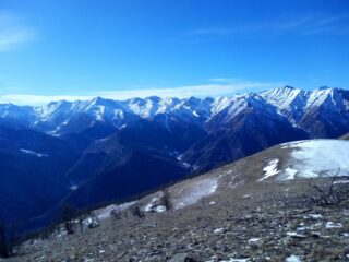 Ramponcini dall’inizio alla fine: ghiaccio poco, neve pochissima in salita e invece accumuli consistenti in discesa, foglie secche scivolose, erba olina.