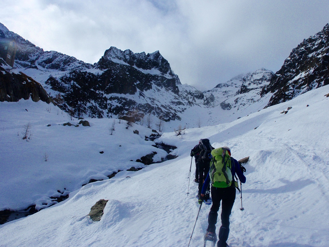 Si passa dentro l’abitato di Besmorello(o si taglia, neve permettendo, per i prati) e si continua sulla strada che dopo un paio di tornanti ed un lungo falsopiano sulla dx orografica, attraversa sul ponte il torrente, altri tornantini, si passa accanto alle cascate al di sopra delle quali si ritorna un po’ sulla dx orogr., altro falsopiano, si riattraversa su un ponticello e ultimo tratto di sentiero, il solo un po’ su un traverso, ma in 5 minuti siete al rifugio.