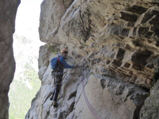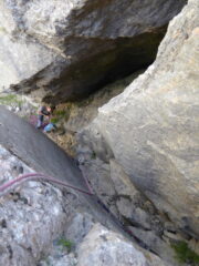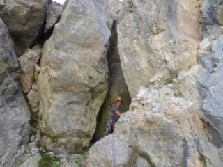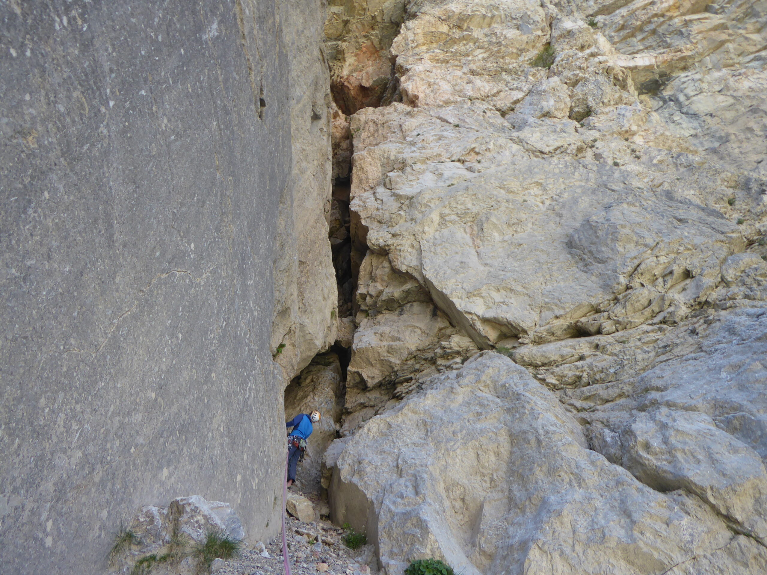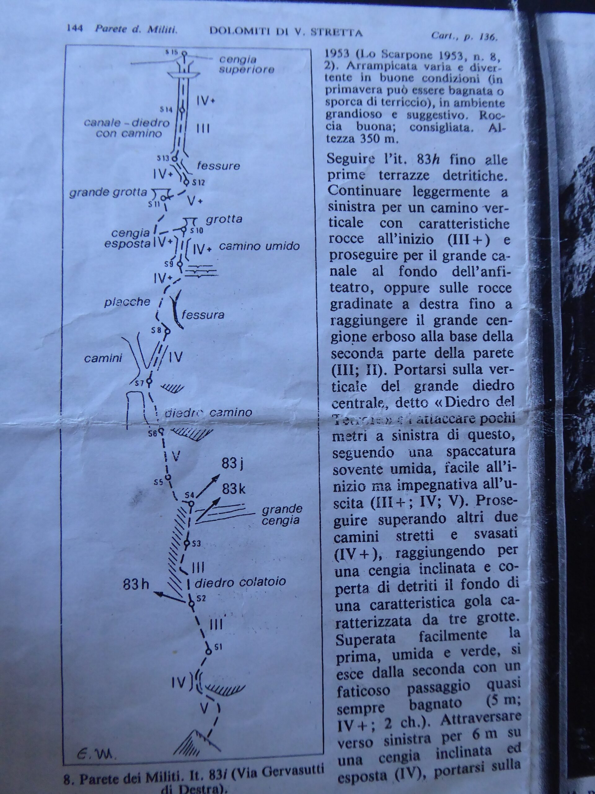 Mi ricordavo la Gervasutti di sx come bella e tranquilla, su roccia comunque buona. Quella di DX è tutta un’altra storia a dispetto dei gradi classici riportati! Roccia discreta e presenza talvolta di detrito, pochissimi chiodi in via, soste non sempre presenti (portarsi chiodi). Traversate esposte, tiri in camino bin bandà, strapiombini..IV+!! e dei III di uscita!! Una vera via per gli amanti del trad più puro e dell’avventura. Fatta la variante della magnifica fessura (portare un 4). Vione che forse non vedeva una ripetizione da anni ma di sicura soddisfazione. Per amanti del genere, abituati su terreni di roccia dubbia e protezioni talvolta aleatorie.