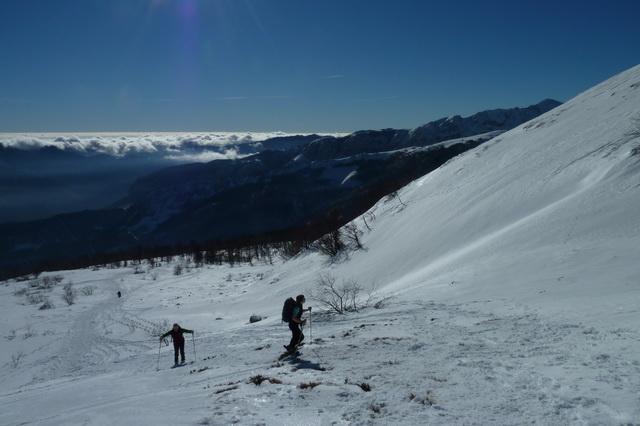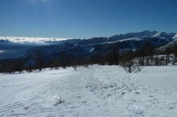 Neve presente su tutto il percorso; traccia molto battuta (come ha detto un mio compagno di ventura: “Sembra ci sia passata una mandria di bisonti”).