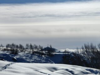 Arrivati solo fino alla fine dello ski lift. Crosta poco portante ma magnifica giornata. Neve Bella solo in pista battuta.