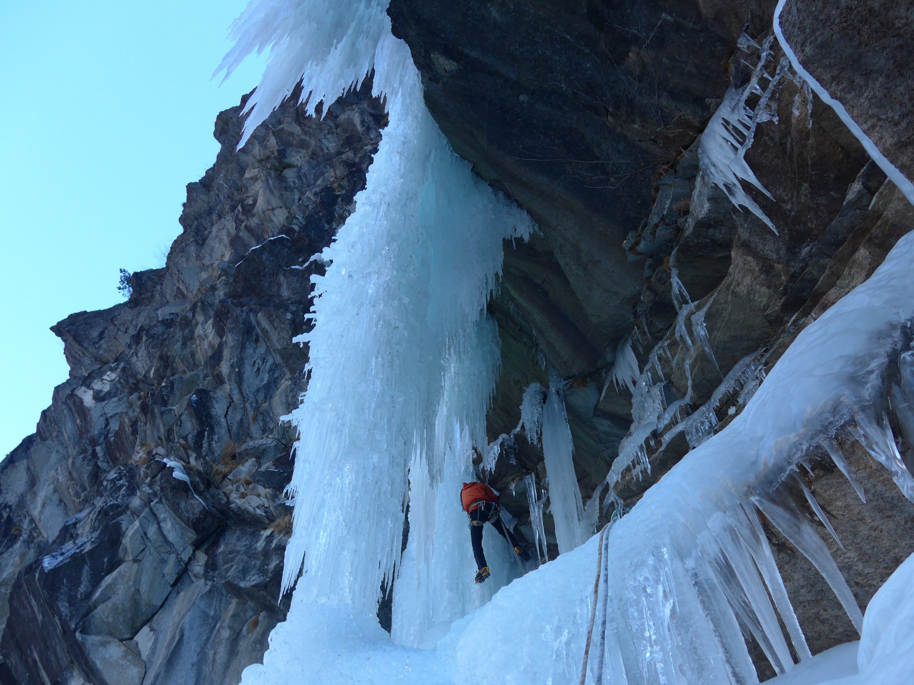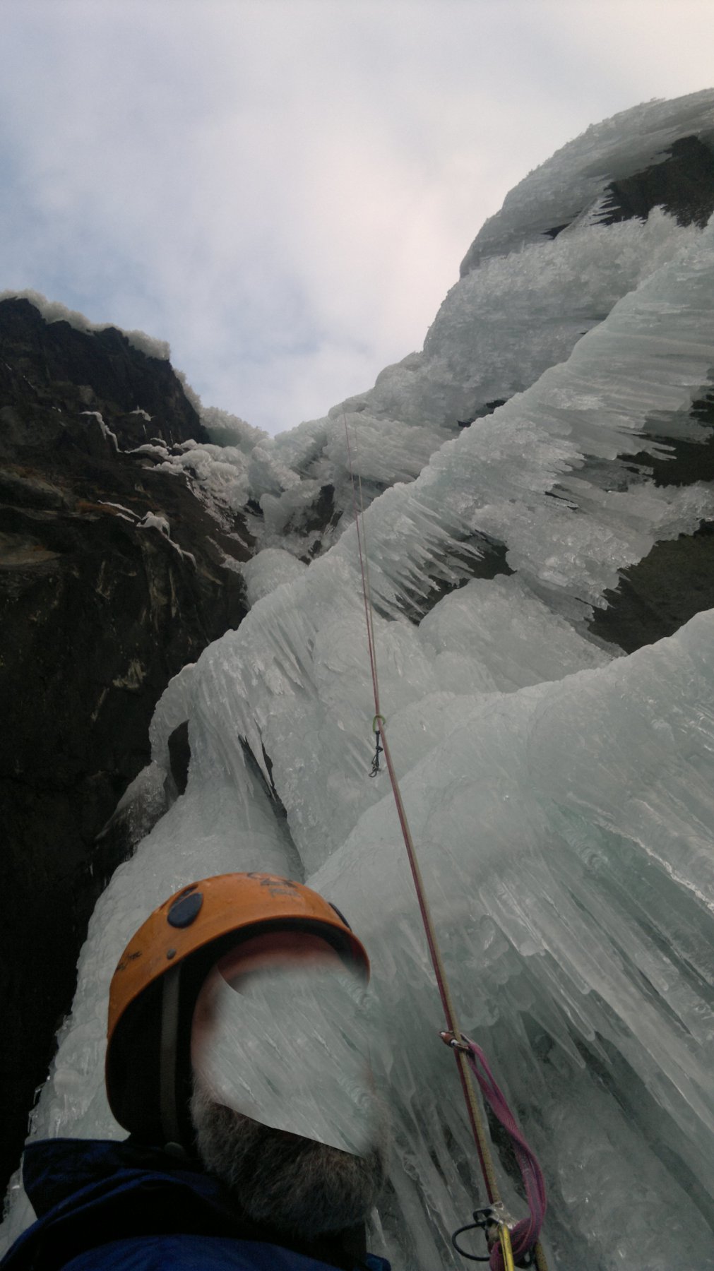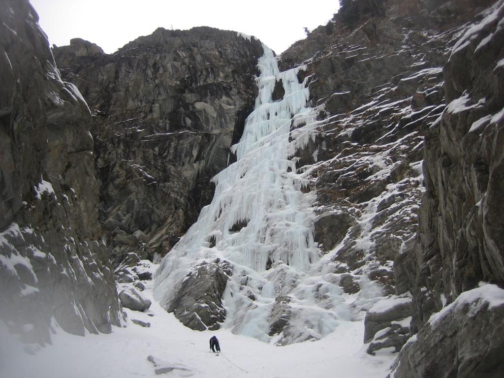 La prima doppia si effettua su fix, la seconda su Abalakov, ed il primo tiro si può aggirare a sinistra traversando nel bosco. Attenzione la cascata è assai esposta al pericolo di valanghe ed è raro trovarla in buone condizioni data la quota relativamente bassa. Siamo partiti troppo presto… 3 ore da macchina a macchina con Lallo.