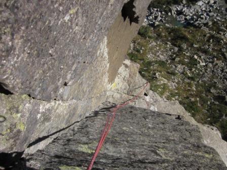 Materiale: in posto 7 spit di passaggio e 6 di sosta. Portare friend fino al 2 bd e nut piccoli.