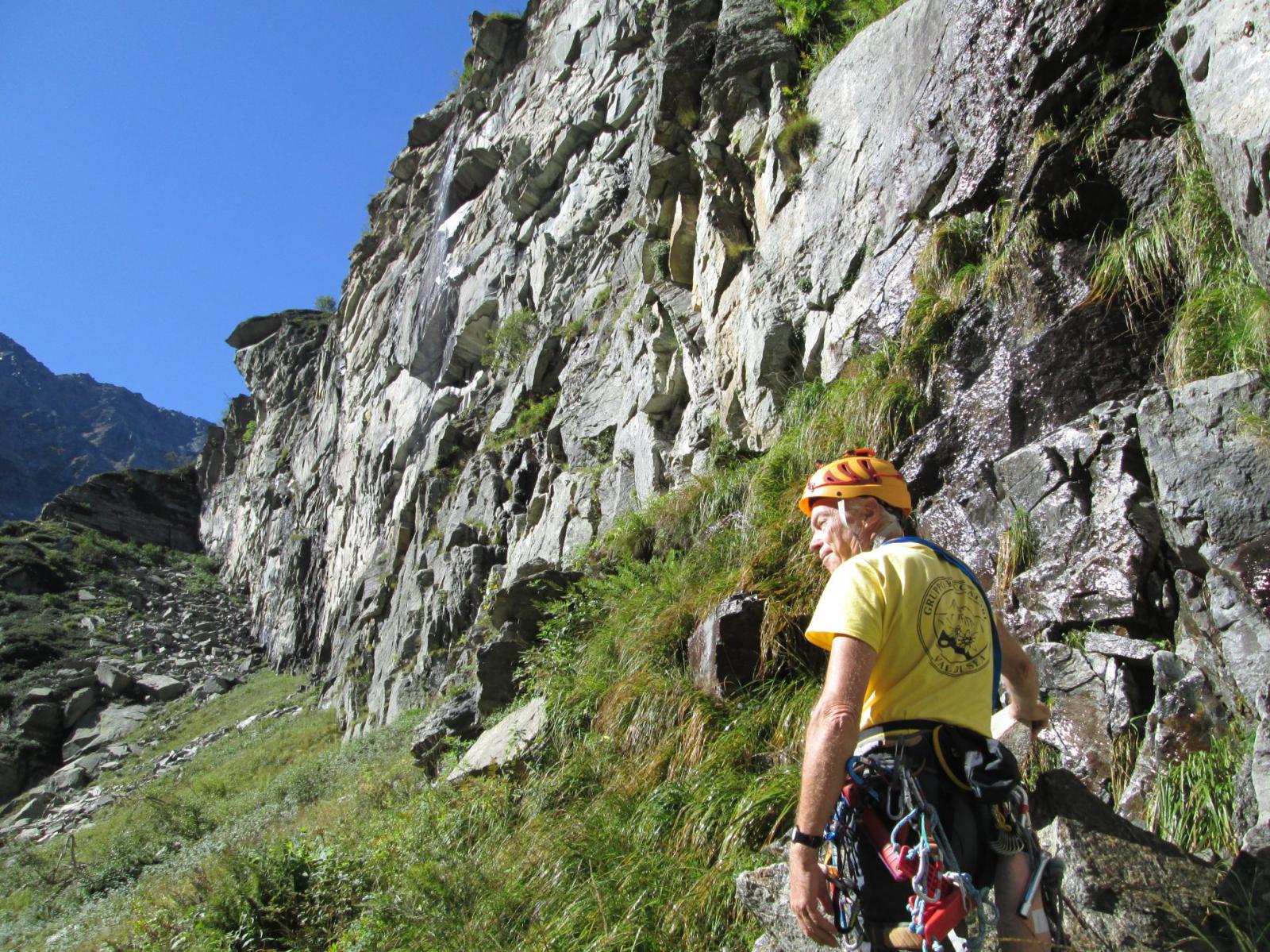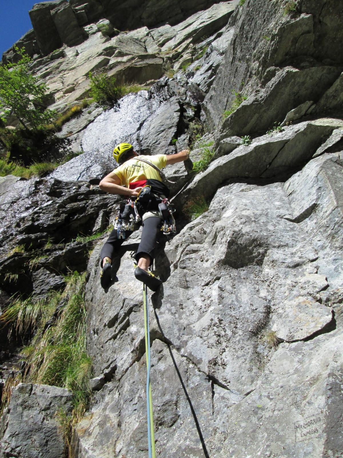 block65 ha già descritto la salita nei minimi particolari. Oltre ad aver messo le placchette inox dove necessario, abbiamo salito altri tre tiri in stile “trad” usando friend e facendo sosta su alberi usati anche per le calate in doppia. Giornata molto ventosa ma almeno molto serena con bellissimo panorama sulla valle di Sea. Il cimitero degli stambecchi è rimasto inalterato dall’ultima salita di tre anni fa.