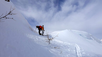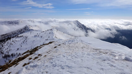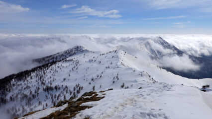 Rispetto alla relazione siamo saliti prima sulla dorsale Ventosa /Farenga e dali tutto per cresta abbiamo raggiunto la Missun . Alcuni tratti ripidi e delicati per esposizione hanno richiesto l ‘ uso dei rampant o dei ramponi . In discesa abbiamo seguito il percorso della relazione in modo inverso .