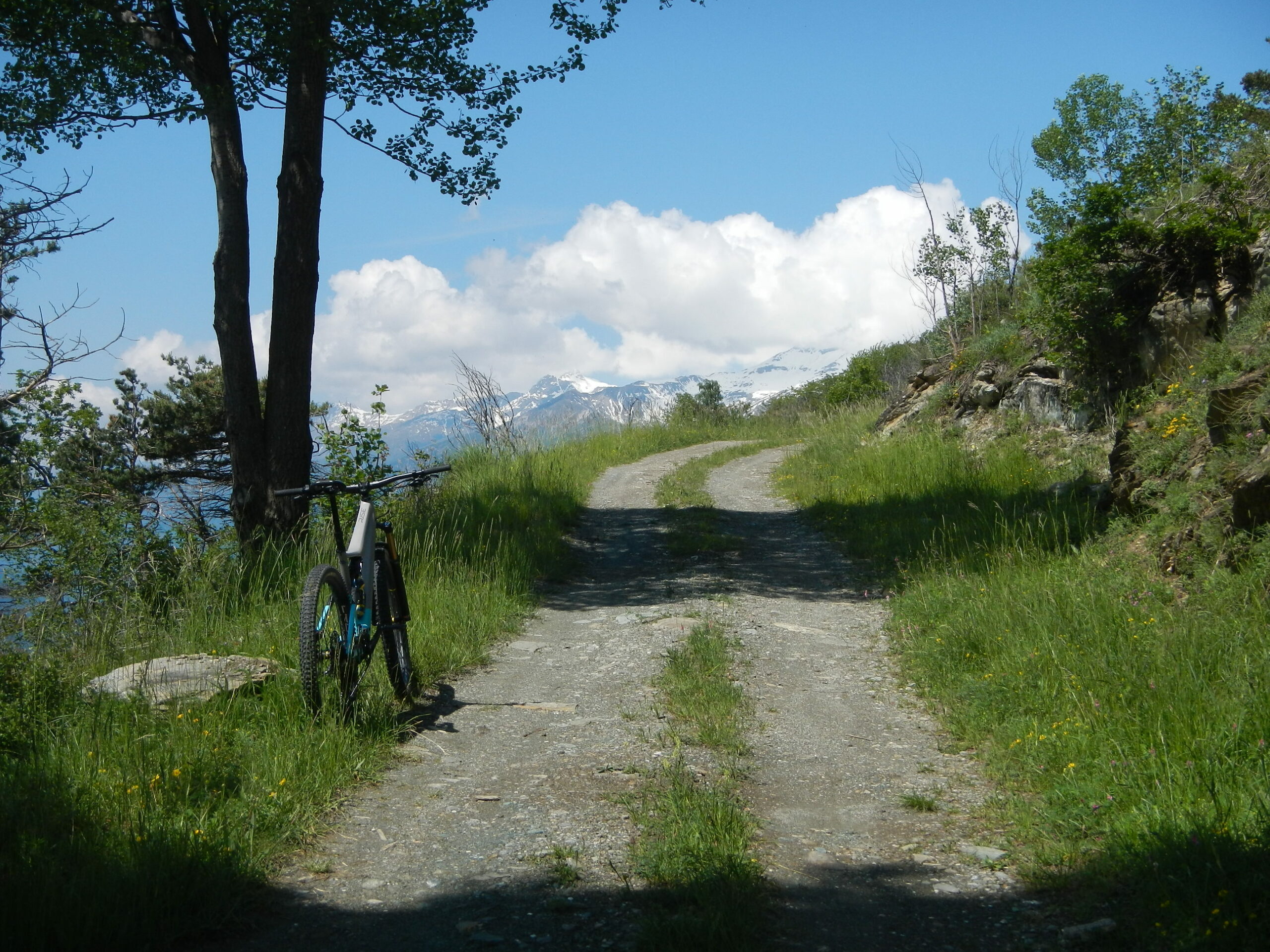 A questo punto si può decidere se proseguire spingendo la bici per circa 20′ fino a raggiungere il sentiero 559 che si può percorrere in discesa verso Chiamberlando (sentiero tecnico), oppure scendere per la strada di andata fino ad incontrare il primo bivio (km 16). Si riprende a salire ed in 2 km di duro sterrato si perviene a Chiamberlando (km 18), dove la strada si spiana e in breve si toccano le case di Fago e Soffietti (km 19).