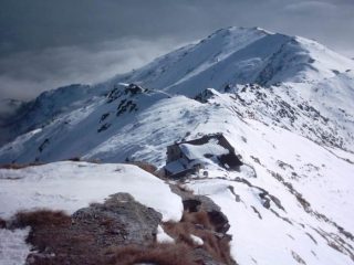 primi 200 mt.disl. sci in spalle. Poi si riesce a salire andando a occhio nel cercare continuità di neve per circa altri 200 metri circa. Poi nessun problema fino in punta. In discesa, primi cento metri trasformata, poi crosta più o meno dura. Parte bassa pesante e …poca. Nel complesso neve insufficiente. Prestare molta attenzione alle pietre su tutto il percorso. Meglio attendere almeno altri 40-50 cm di neve. Bella giornata di sole.
