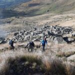 Si segue la sterrata (volendo si può tagliare il tornante) fin quasi all’alpe Steveglio dove, ben individuato da ometti, parte il sentiero B4 che porta agli alpeggi di La Balma e poi del Buscajun. Qui ci si innesta sul sentiero C1 (indicazioni su pietra al suolo) che, dopo avere attraversato due canaloni e su percorso ripido e sempre ben segnato, porta al Rifugio Mombarone e da questo alla cima.