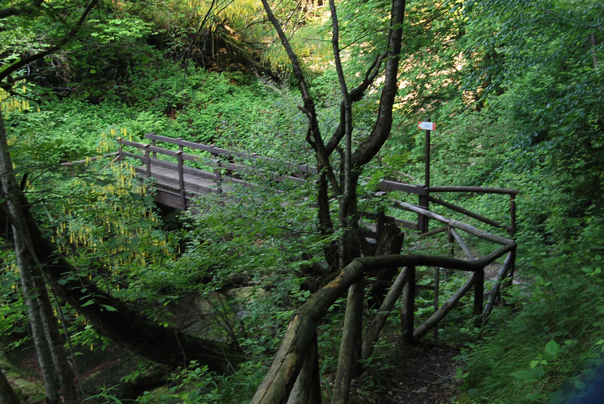 Dall’abitato di Sordevolo si segue la strada per San Grato e al bivio (indicazioni) si continua in direzione Prera. Passata la frazione si supera il rio dove inizia anche il divieto di transito per le auto e si arriva sulla Roggia Molinaria dove una palina indica il sentiero che scende alla Ferrata dell’Infernone. Si segue il sentiero che prima costeggia la Roggia poi scende deciso fino ad un altro bivio con palina; si ignora il ramo di sinistra che porta alla ferrata, si segue invece il ramo di destra che porta al Ponte degli Alpini dove si attraversa l’Elvo e si risale sulla sponda opposta. Fin che nel bosco il sentiero è ben marcato ma scompare, coperto dall’erba alta, quando si esce all’aperto; occorre comunque salire al soprastante alpeggio (Val Macia) raggiunto il quale ci si ritrova sulla strada asfaltata per Bagneri. Seguire in salita l’asfalto, quindi per mulattiera si risale alla Chiesa di Bagneri, alla Madonna del Piümin e infine al Tracciolino. Continuare sul Tracciolino in direzione Col San Carlo fino ad incontrare sulla destra la strada asfaltata che sale alle Salvine; la si percorre seguendo i tornanti fino a quando questa si avvicina al torrente, lungo il quale, non molto evidente, corre un sentiero: è il C64 (all’inizio forse poco marcato ma poi sempre evidente grazie alle frequenti e fresche tacche b/r) , che un po’ nel bosco un po’ allo scoperto porta sulla sterrata presso il Rifugio Pianetti.
