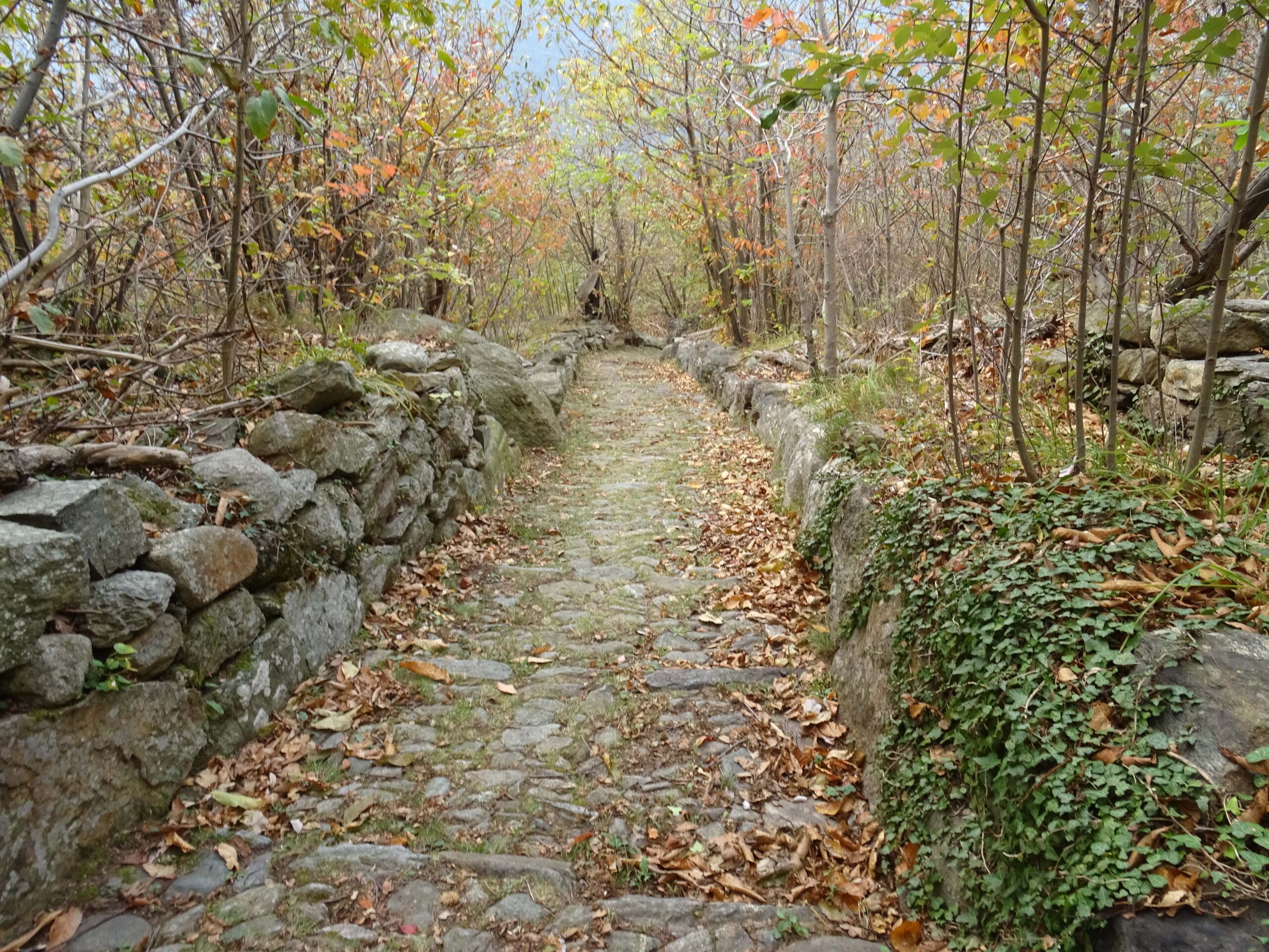 Il sentiero vero e proprio comincia alla fine dell’asfalto (bisogna fare 300 metri in piano, per poi prendere l’unica strada asfaltata in salita e pochissimo dopo prendere il bivio a sinistra fino a dove finiscono le case e comincia il sentiero) ed è per circa metà una mulattiera ripidissima ma pertettamente tenuta facendo parte della GTA, per poi diventare sentiero dopo Trovinasse. Oltre ai segnavia 854 si possono seguire le tacche azzure e sopratutto le tacche rosse e bianche (negli incroci con le strade asfaltate in assenza di tacche proseguire in salita sull’asfalto, tutti i bivi sono segnalati bene)