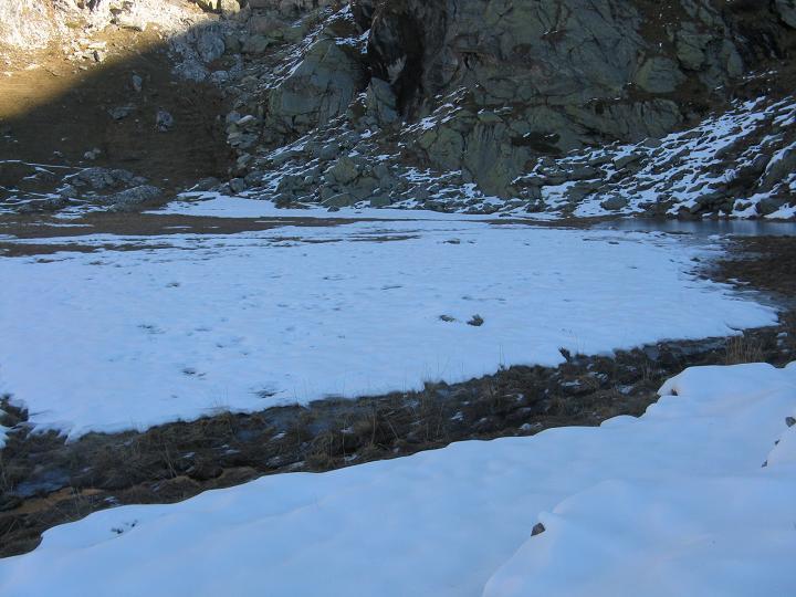 Altezza neve dal 15 ai 30cm., neve compatta e dura per cui necessari i ramponi (il versante di salita è prevalentemente rivolto a ovest, la neve ha tenuto anche in discesa).