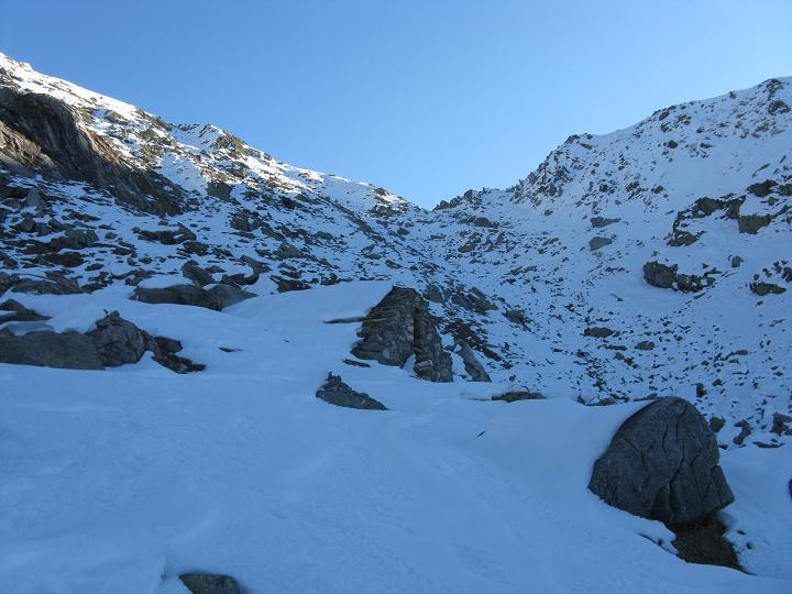 Terreno duro e ghiacciato, neve da quota mt. 1850, dalla Conca di Pianmorto sino in cima.