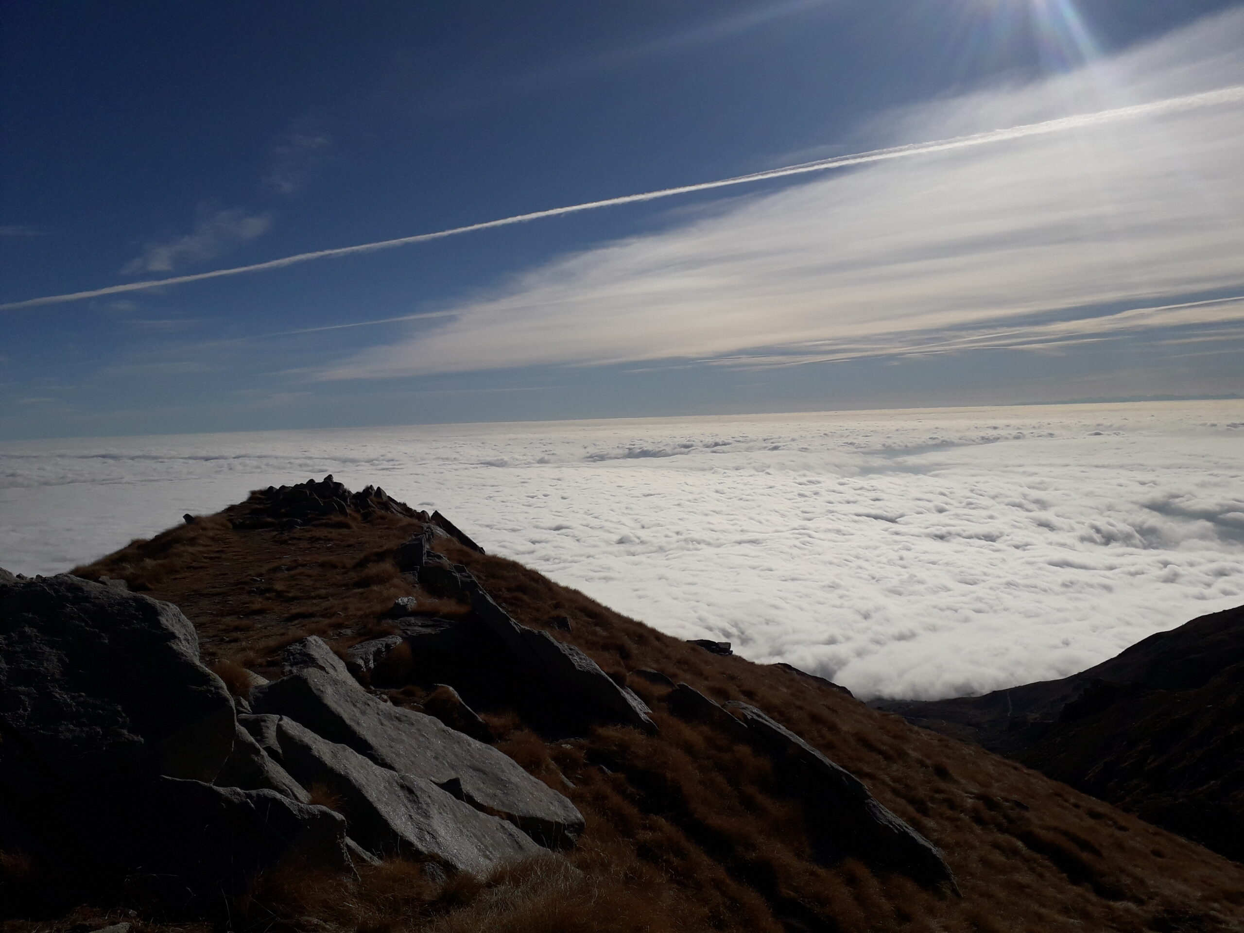 Giornata serena e fredda ma priva di vento…panorama stupendo dalla cima con la pianura coperta da un mare di nuvole.