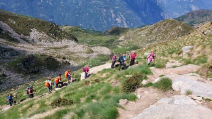 Gita sociale del CAI di Susa con noi referenti. 24 partecipanti, di cui una bambina di 9 anni ed un “ragazzo” di 84. Dopo circa mezz’ora di salita, ha iniziato a piovigginare… fuori coprizaini, mantelline, ombrelli. La nostra grande Presidente Aurora ha intonato “oh sole mio” e tutto il gruppo dietro… Incredibile, dopo una decina di minuti si è alzato un po’ di vento ed in poco tempo si è rasserenato… Il meteo si è adeguato alle nostre stonature… A questo punto bella gita, con belle fioriture ai lati del sentiero e ottimi panorami dalla cima. Unica nota negativa il trattamento al rifugio Mombarone. Per i 14 che hanno mangiato (polenta concia, pezzettino di crostata, vino e caffè 15 €, 20 se con salciccia) è stata portata una dose molto scarsa di pseudo polenta concia. Alla richiesta di portarne ancora un po’, secca risposta che bisognava pagarla una seconda volta. In tanti rifugi che abbiamo frequentato, mai visto tanta scortesia (anzi spesso il gestore viene a chiedere se va tutto bene…) Qui evidentemente devono ancora imparare come si trattano i clienti… Assolutamente da evitare. Complimenti ancora alla giovane mascotte Sofia e al decano Franco, saliti tutti insieme in cima in meno di due ore e trenta.