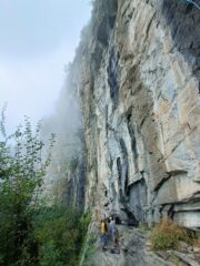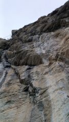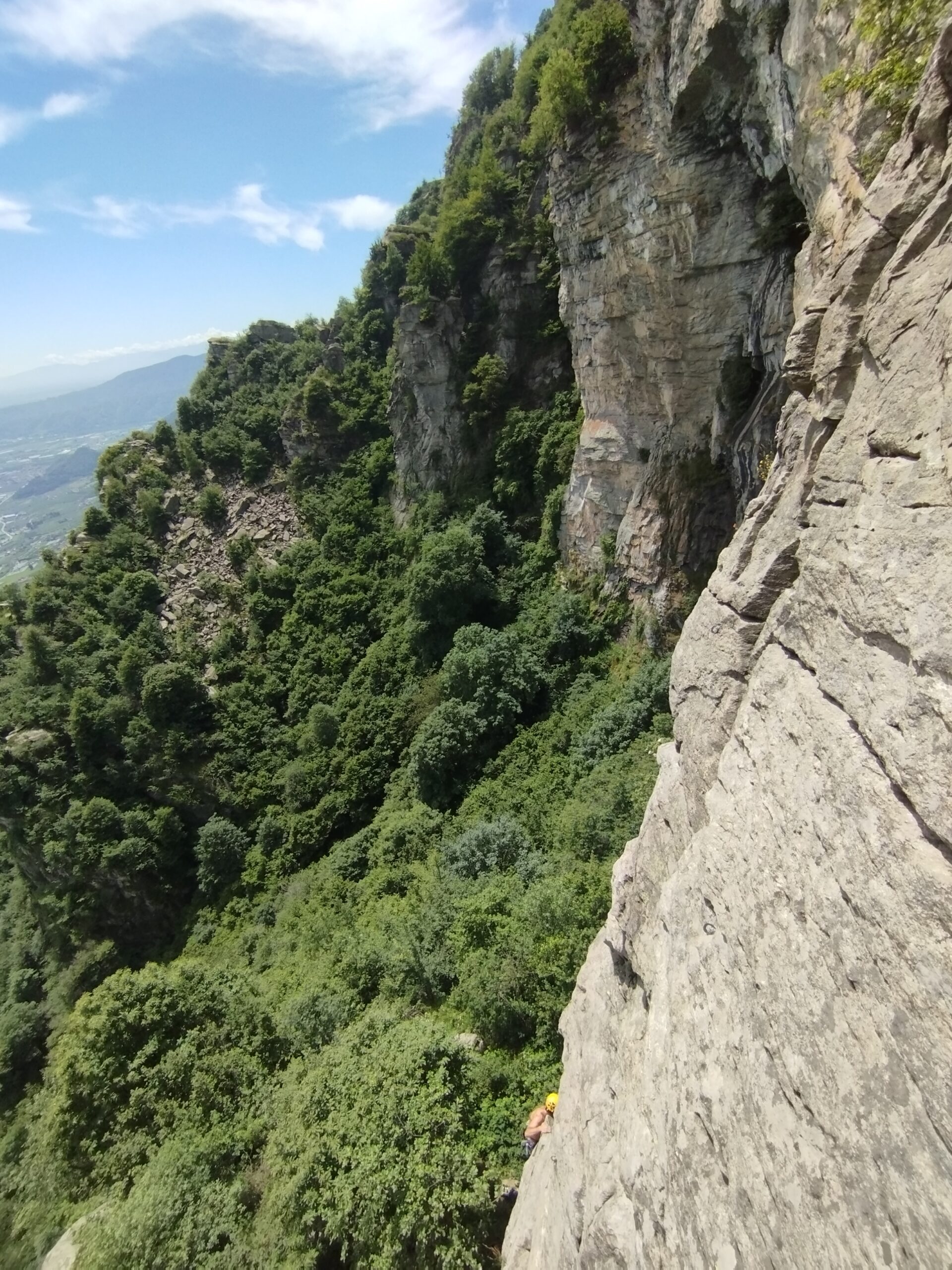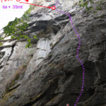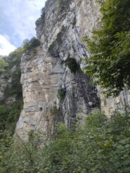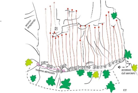 Qui è presentato il settore destro, cioè quello che sfrutta la cengia basale e anche l’unico per ora attrezzato con 20 tiri di lunghezza variabile dai 20 ai 35 metri, completamente “naturali”.