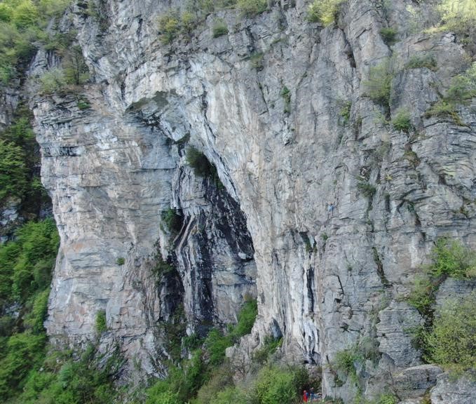 Imponente falesia, che nel settore sinistro tocca i 120 metri di altezza. E’ caratterizzata da grandi strapiombi e muri verticali dalle diverse colorazioni.