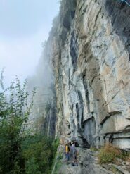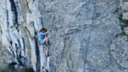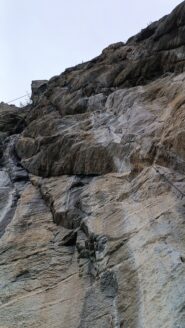 Si raccomanda di prestare particolare attenzione sull’estremità sinistra della cengia basale, collegandosi agli ancoraggi in posto e controllando la lunghezza della corda.