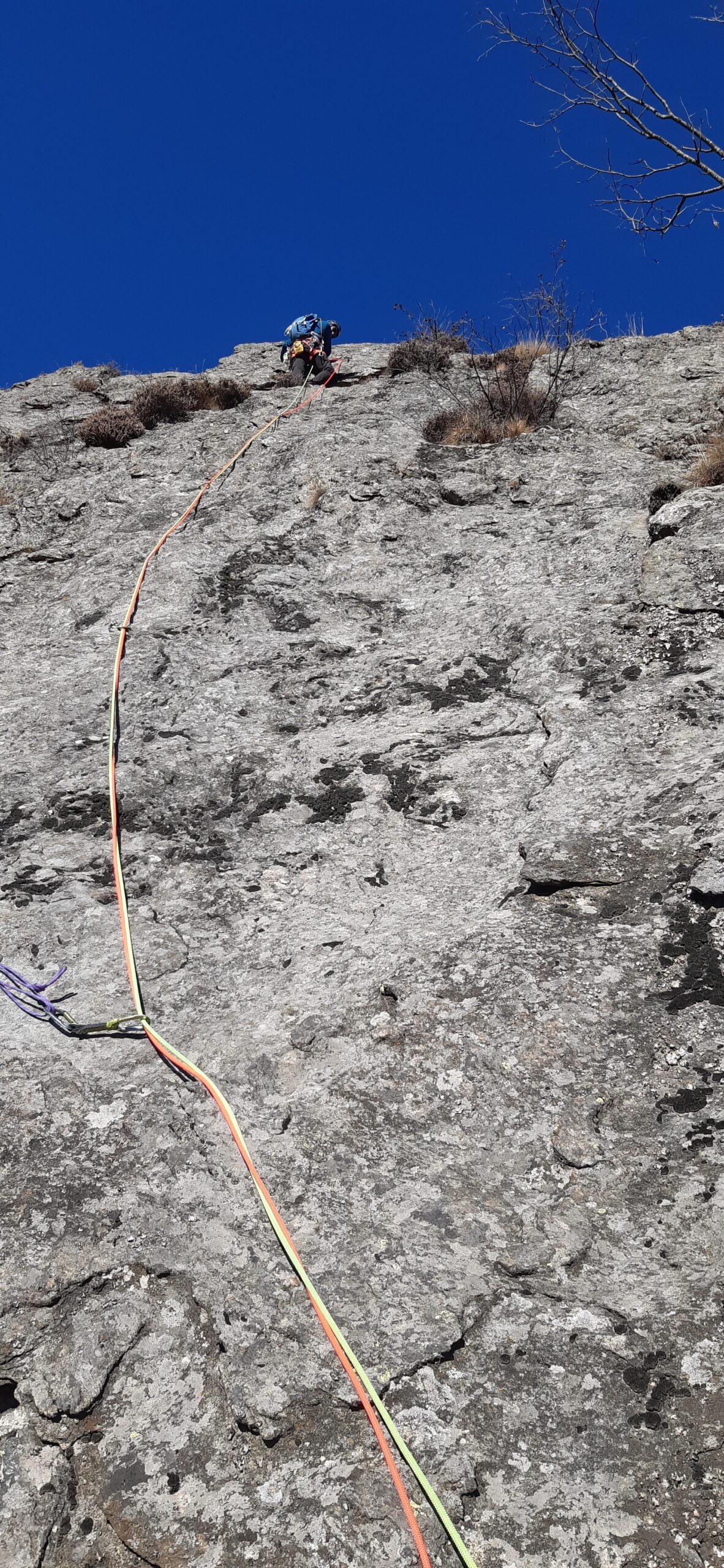 Salita ed attrezzata dal basso il 28/11/2023 da Teddy e Lorenzo. Soste con 2 fix collegati da cordone tranne la prima su robusta betulla con cordone. Roccia compatta e molto lavorata, protezioni veloci inutili.