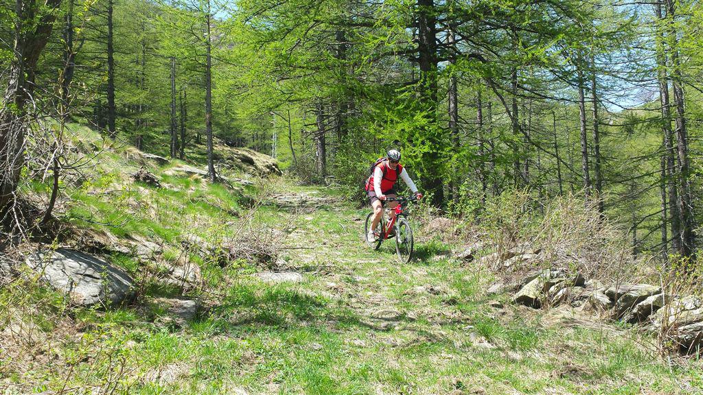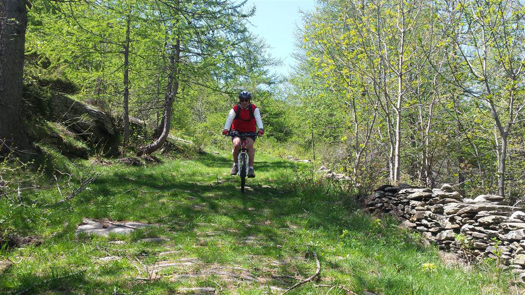 Si scende per la sterrata che passa alle pendici della Cima di Bard, seguendo l’antica strada reale, a tratti un po’ sconnessa.