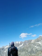Splendida! Sentiero ben segnato fino al passo del lago Gelato (che era gelato per davvero) e per salire al Moncimour bisogna un po’ cercarsi la strada. Ho scelto di salire sulle placche di roccia (grado I-I+) che offrono una migliore progressione, sia all’andata che al ritorno, rispetto agli sfaciumi che si incontrano tra il lago e il Moncimour.