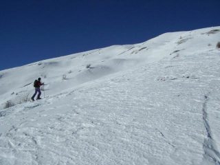 Saliti partendo dal ponte rio Pomerol. Discesa in alto su neve prevalentemente crostosa non portante, o semitrasformata sulle dorsali pulite dal vento dei giorni scorsi. Parte centrale nel bosco con ancora un po’ di farina pesante riportata. Parte finale trasformata con crosta portante purtroppo molto lavorata dal vento.