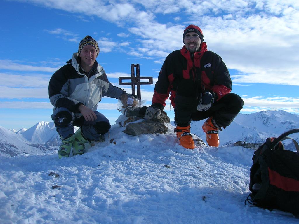 ore 8-15′ -13.5° a pragelato !,saliti un po prima di aleve ,sulla dorsale dx orografica del moncrons,dove c’erano rare tracce, veramente bello il paesaggio ,suggestivo,e un gnan bel cielo azzurro.noi soli su questo itinerario che con 30 cm di fresca su fondo duro ne è risultata una bella sciata . in compagnia del padrino del mio nuovo nascituro LUIGI ENRICO . saluti