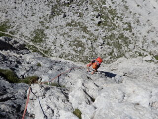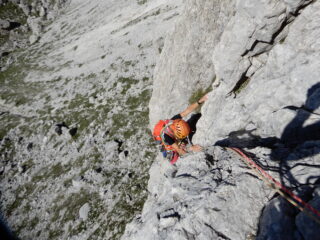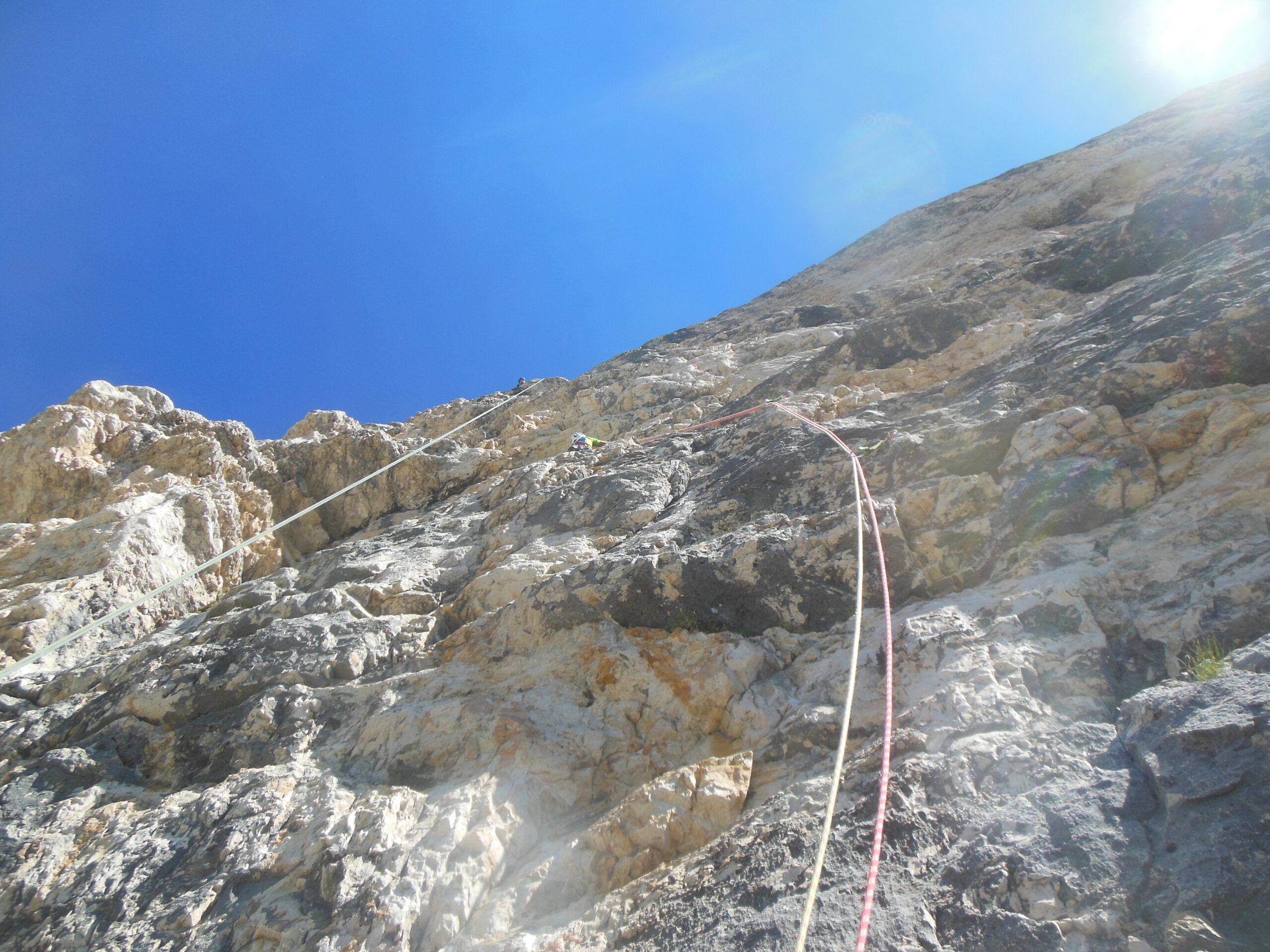 Fatta tutta in libera a vista, un grande divertimento. Io credo che questa via per la facilità di accesso, per la qualità eccelsa della roccia, per l’ottima chiodatura, per le soste comode, per l’ambiente, possa davvero considerarsi fantastica!