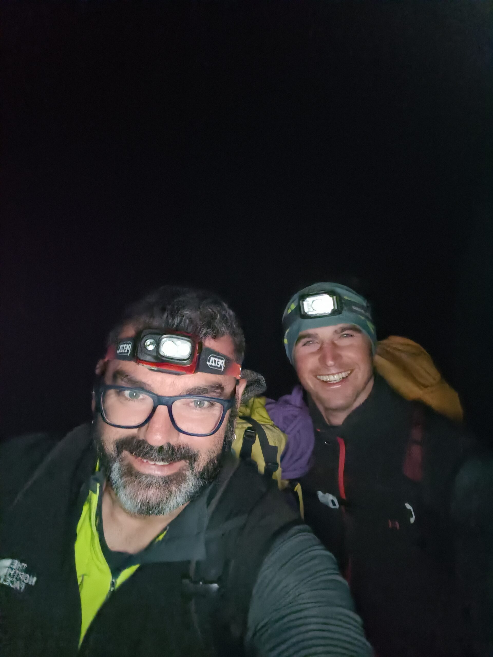 Con Patrick e un’altra cordata poco prima di noi,tutto bene tranne un vento a tratti forte.10 ore da terme a terme senza correre ma senza dormire.Alla cumbre siempre 😜