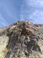 Salita interessante,roccia buona purtroppo lichenata.Nel complesso nonostante la prima parte fino al Lagarot veramente noiosa la salita risulta poi piuttosto scorrevole.Soste e chiodi se ne trovano dove servono,ma in ogni caso spuntoni e protezioni veloci sono facili da mettere.