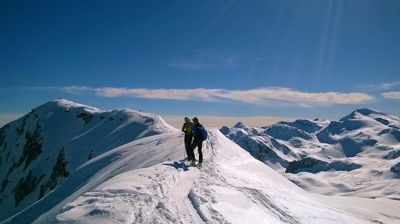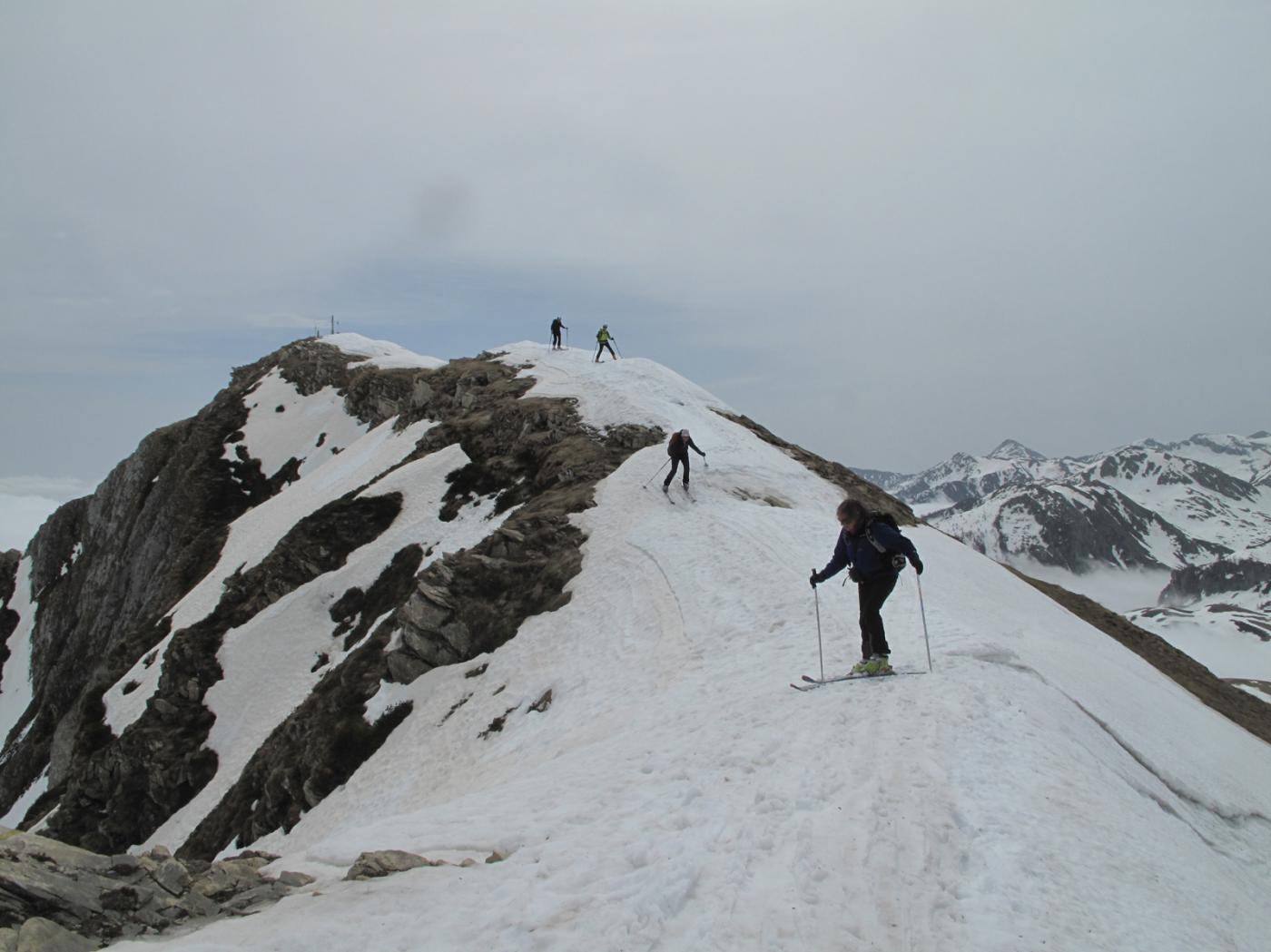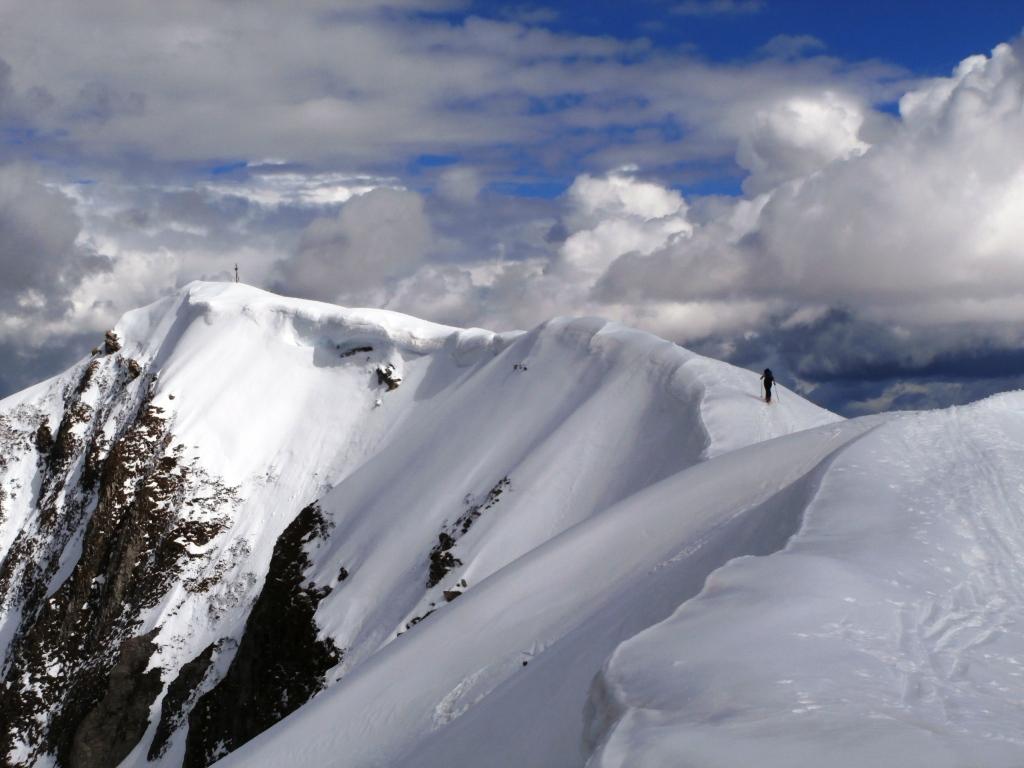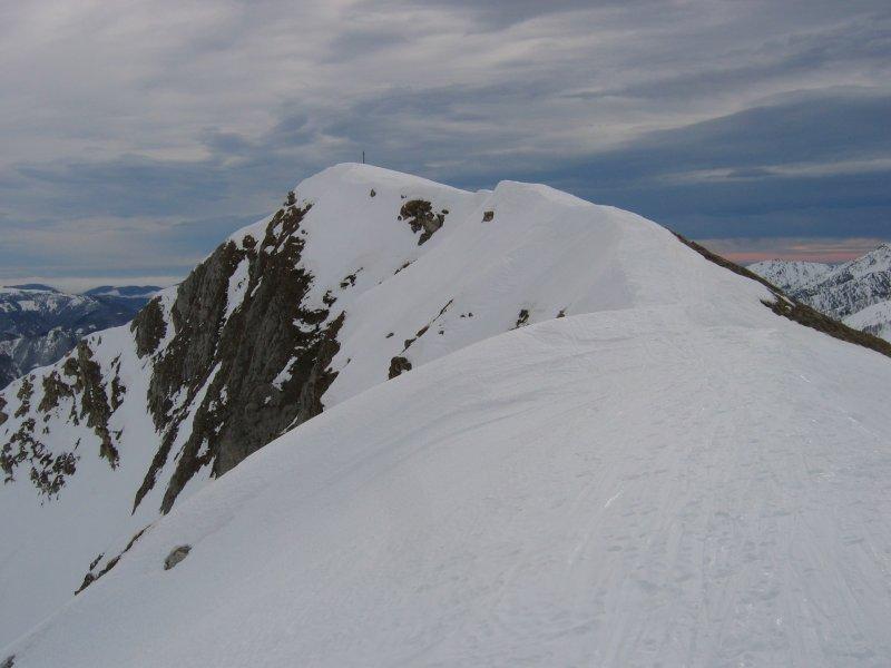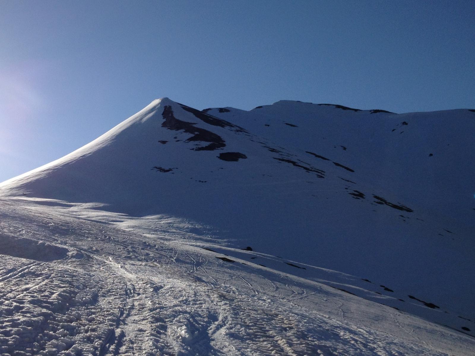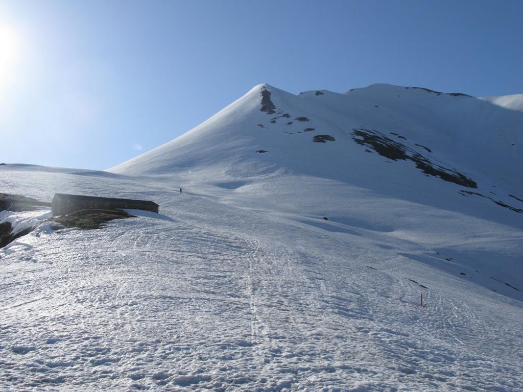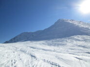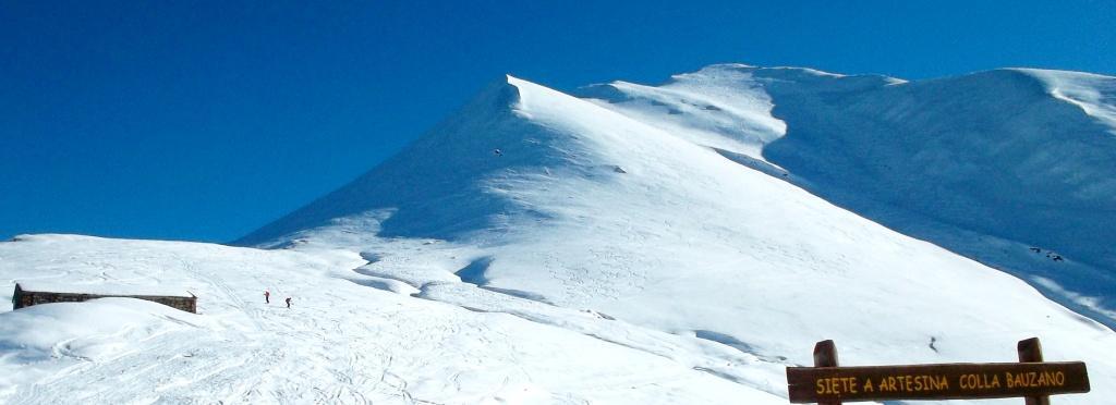 In alternativa dalla colla Bauzano si può aggirare il primo sperone sulla sinistra portandosi in cresta fino alla vetta , questa soluzione risulta solitamente più sicura e permette di valutare meglio le condizioni della neve.