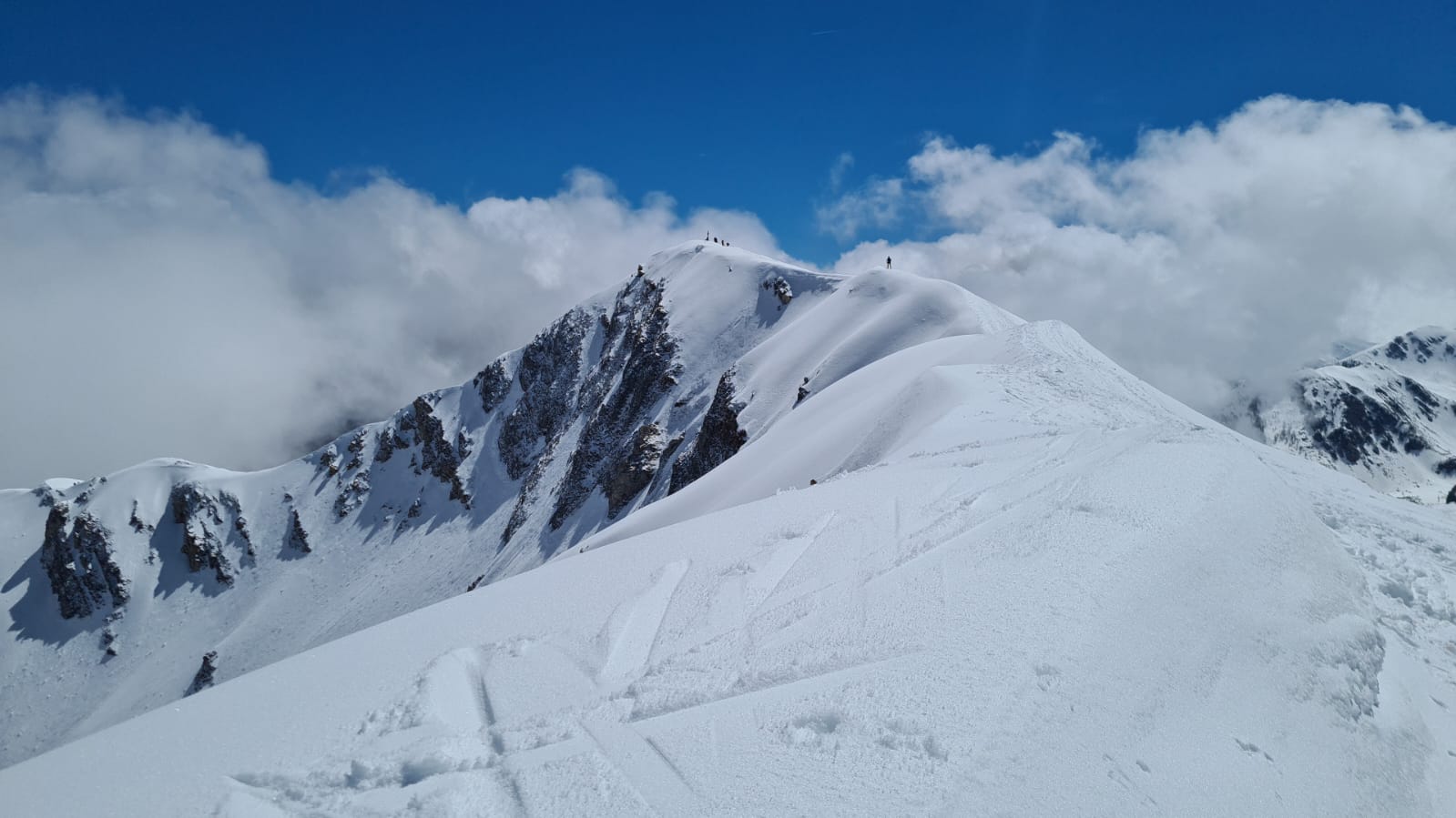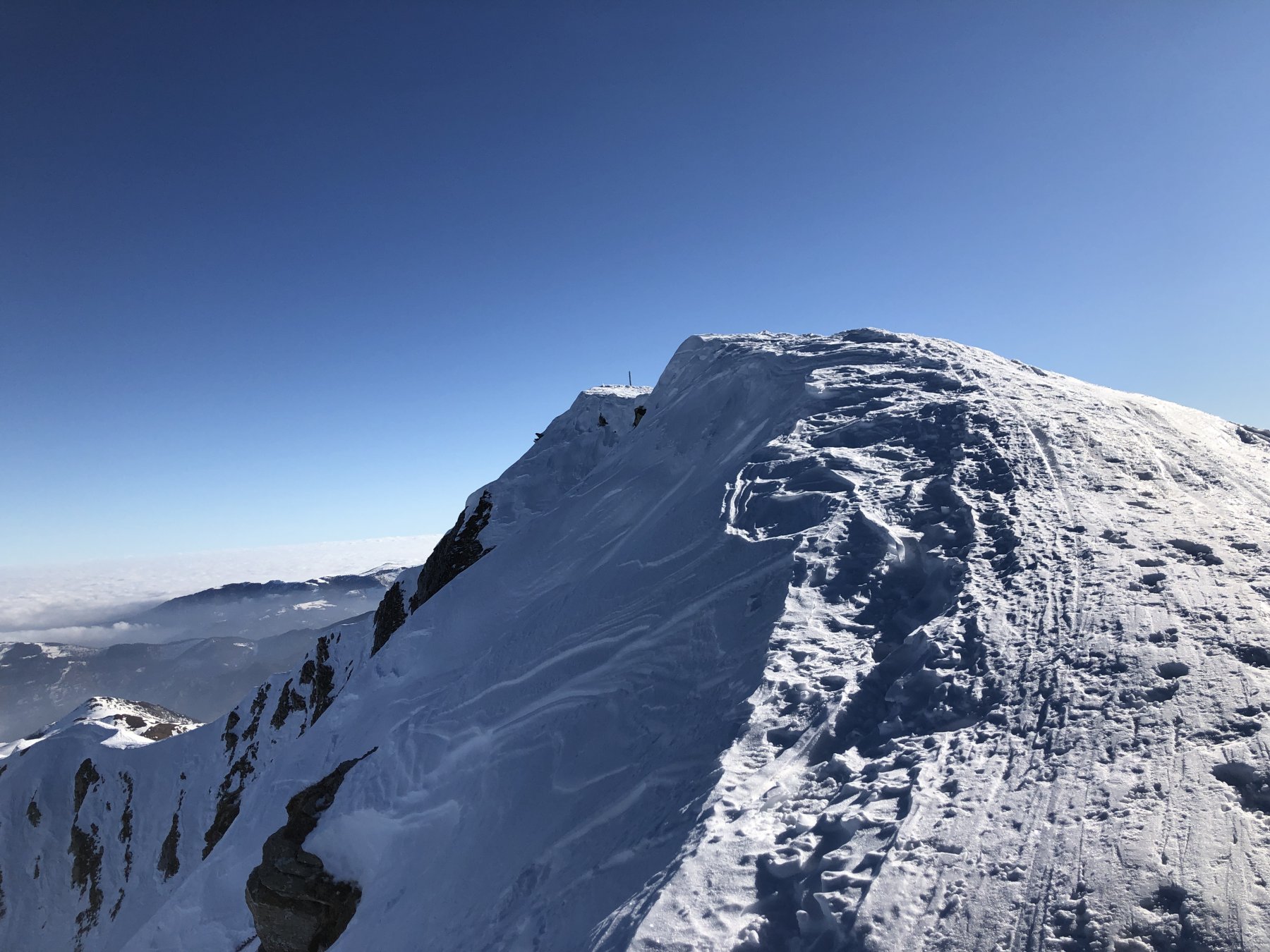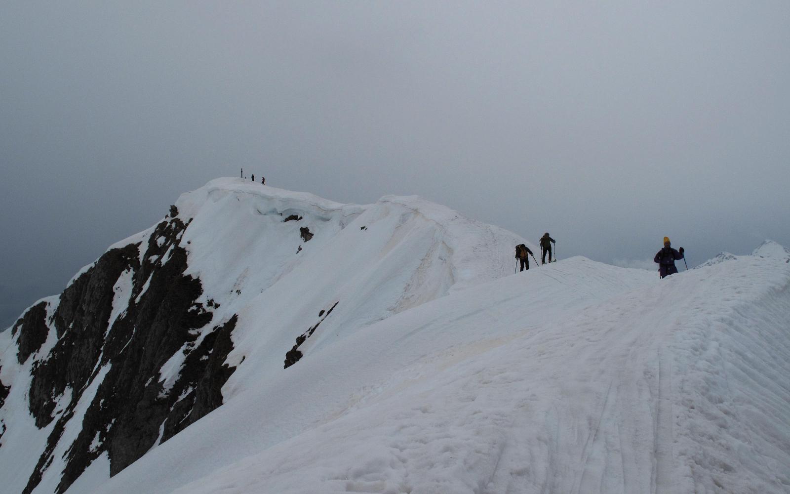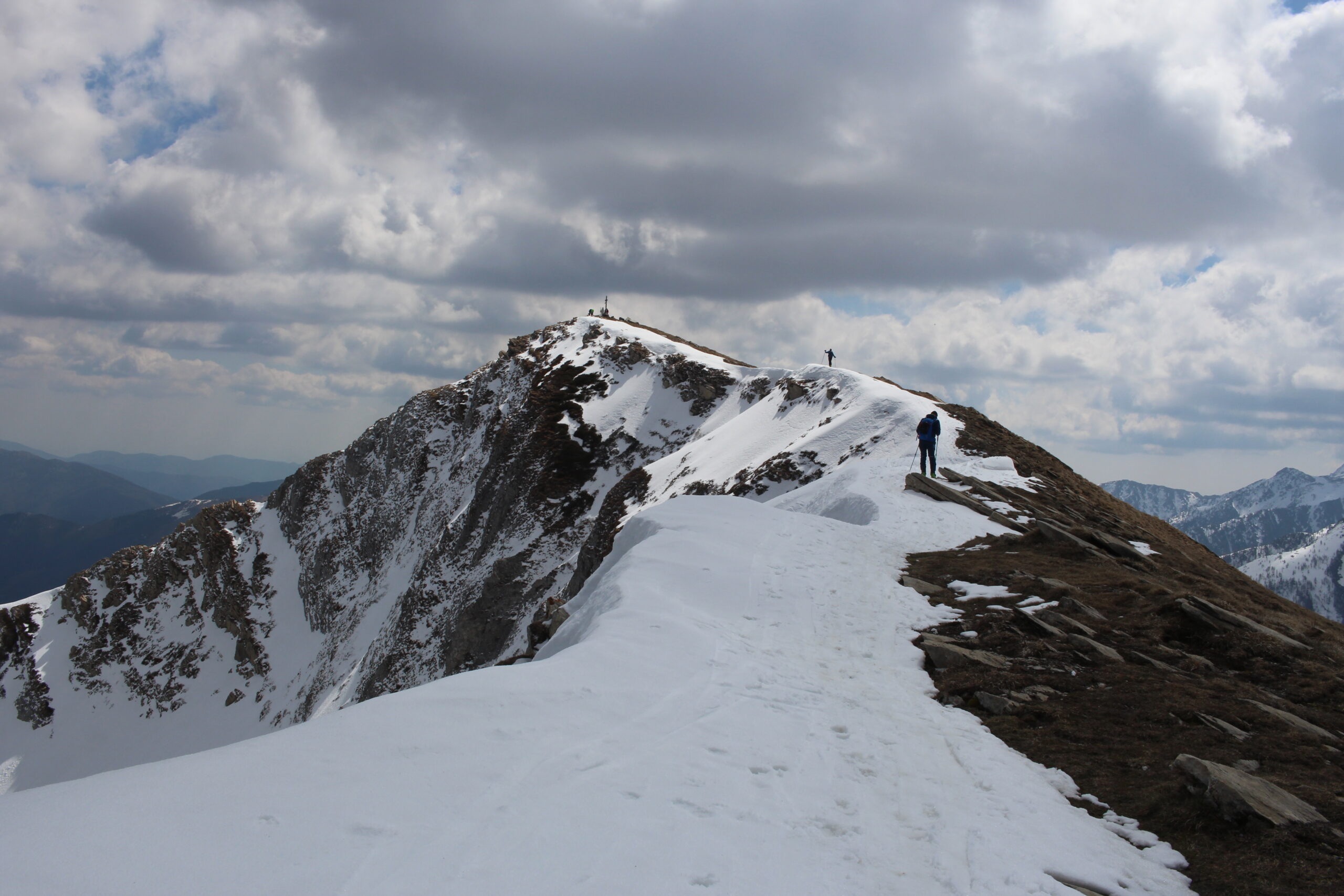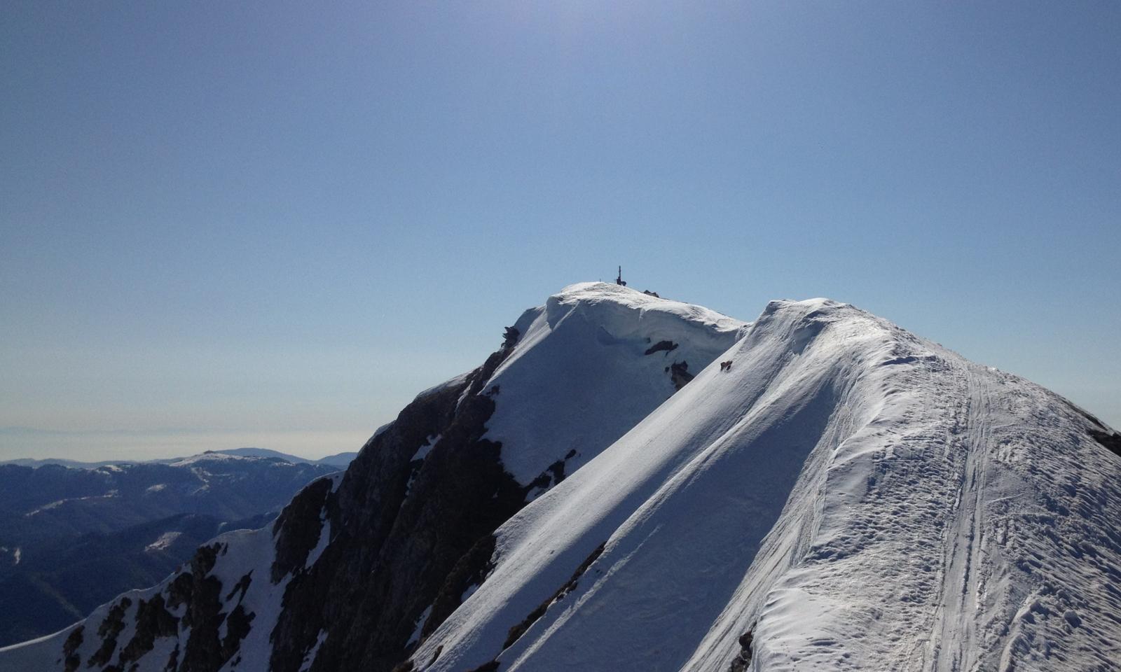 In alternativa dalla colla Bauzano si può aggirare il primo sperone sulla sinistra portandosi in cresta fino alla vetta , questa soluzione risulta solitamente più sicura e permette di valutare meglio le condizioni della neve.