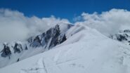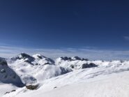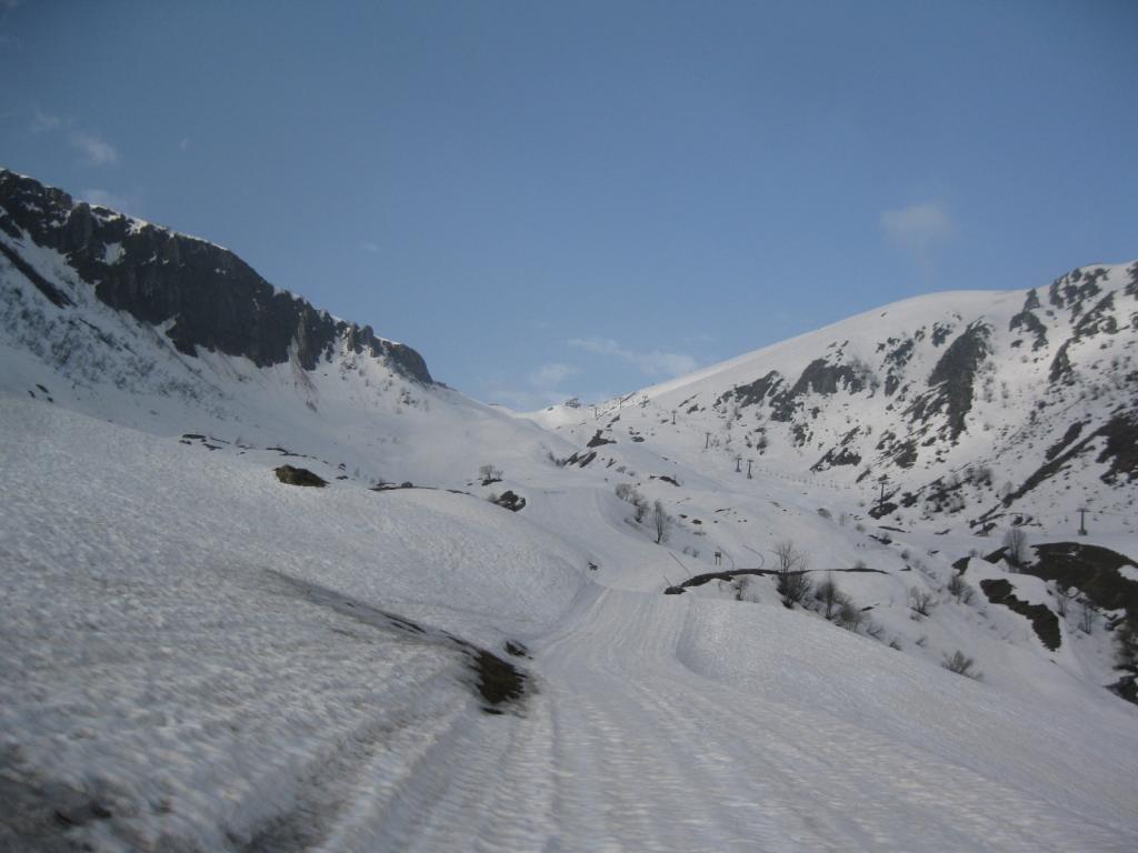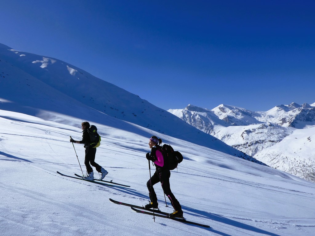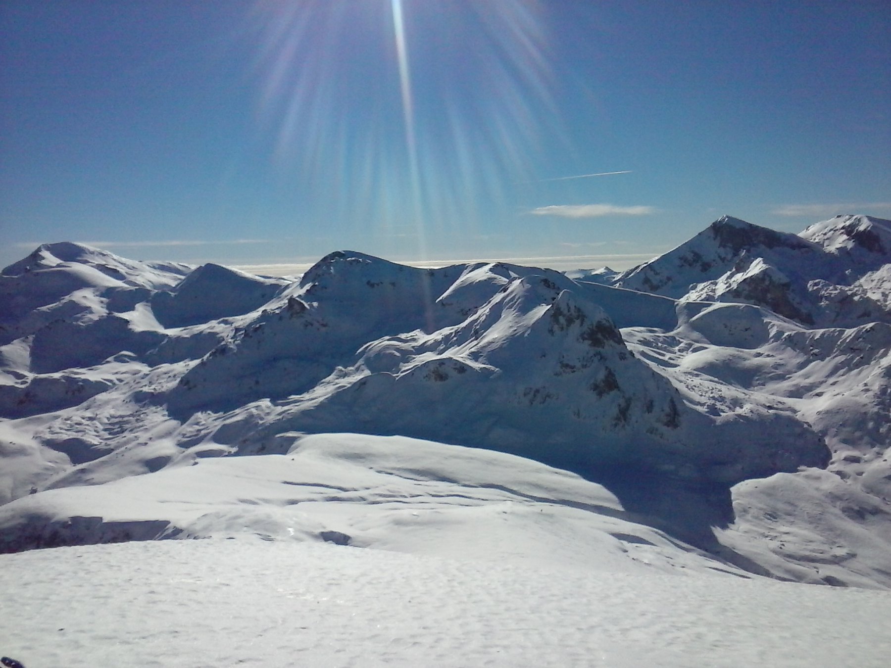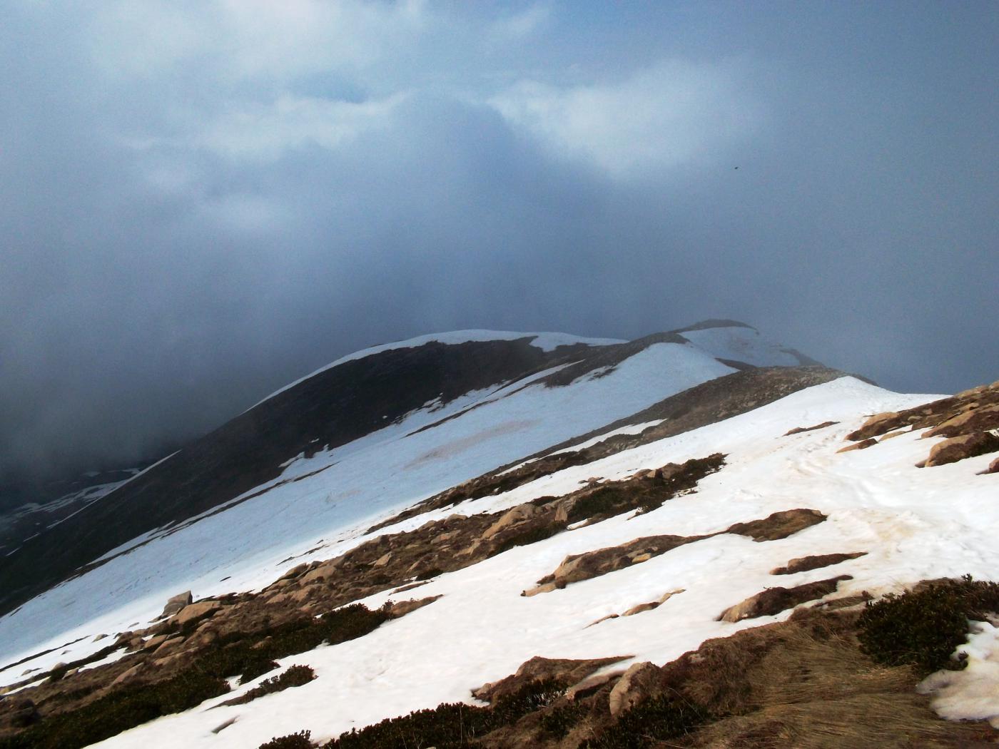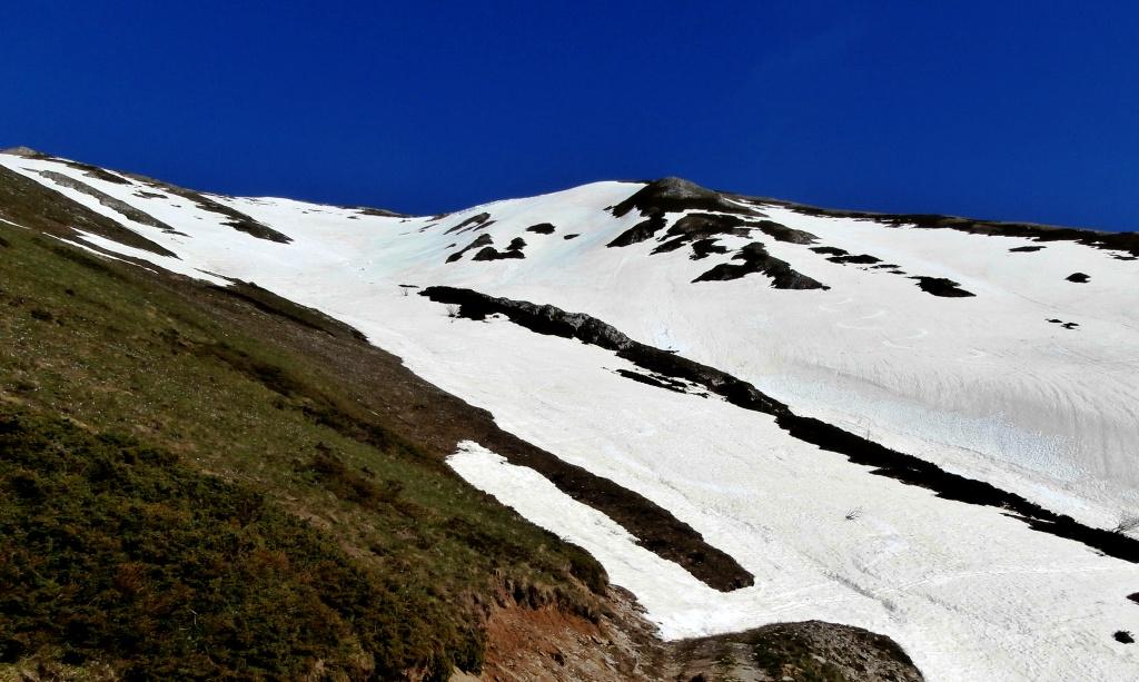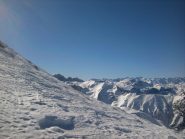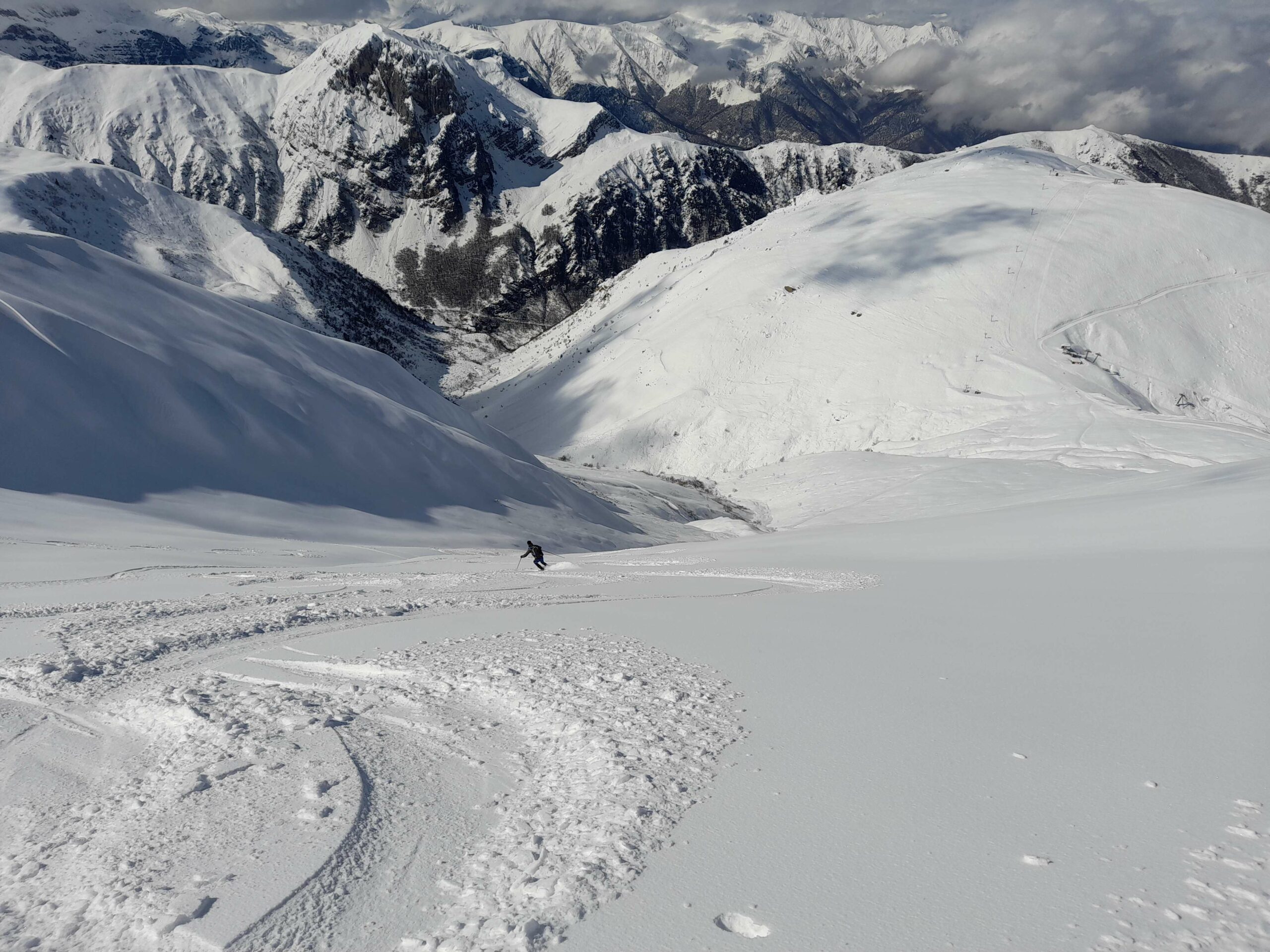 per la discesa ci sono molte varianti che vanno scelte in base all’assestamento del manto, il canalone e le varie dorsali alla sua destra o sinistra richiedono nevi ben assestate oppure si riscende dal versante di salita