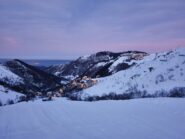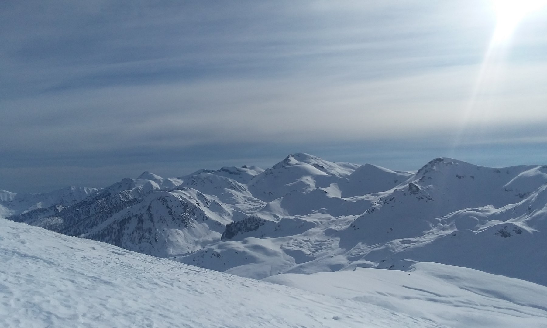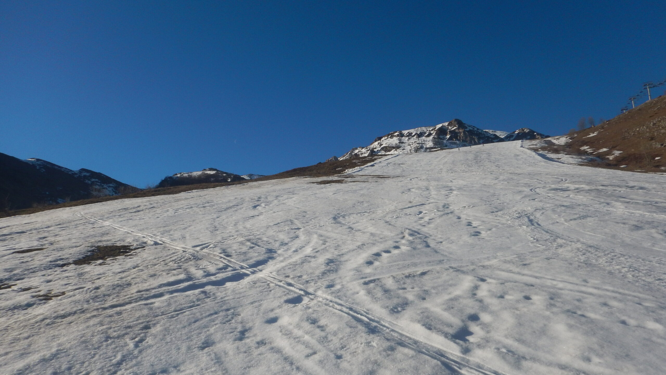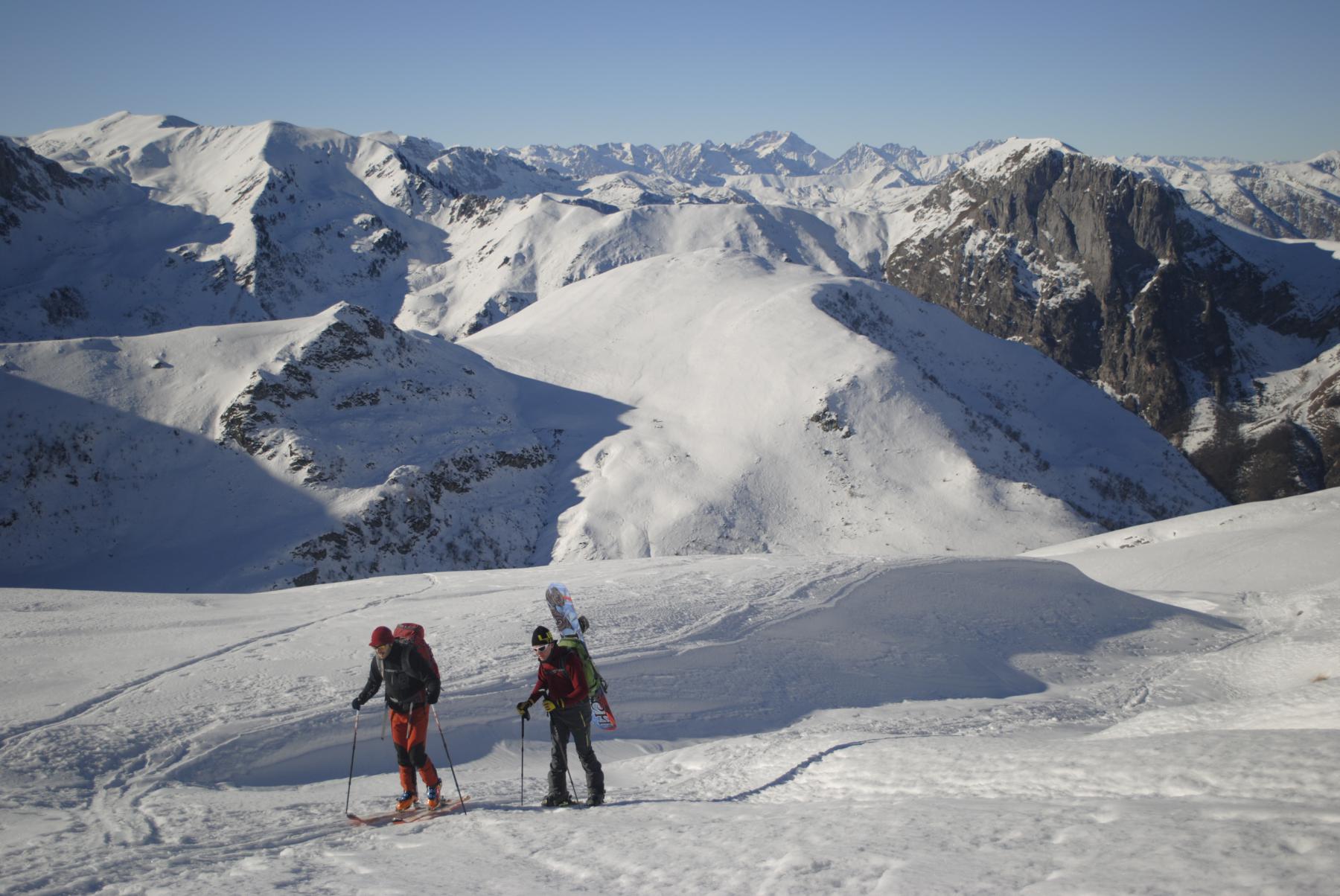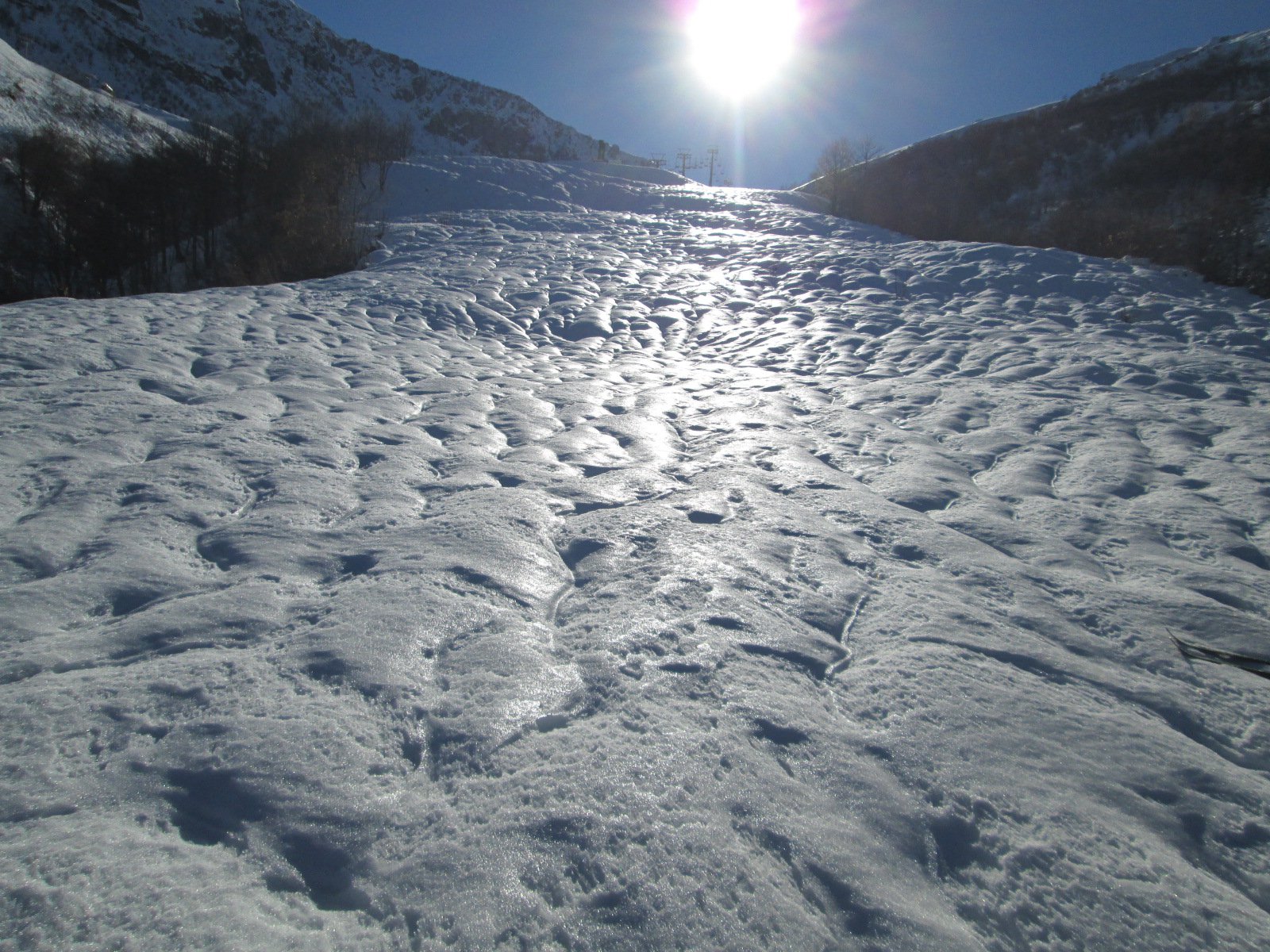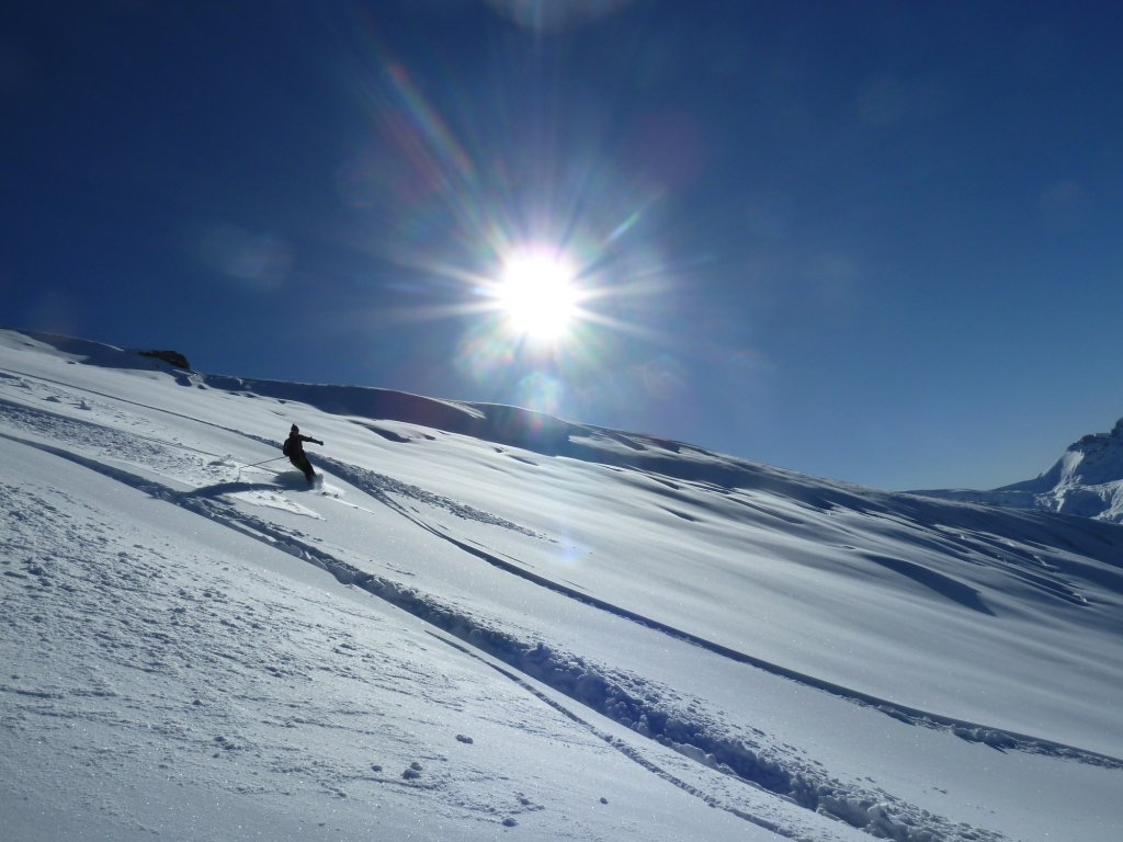 per la discesa ci sono molte varianti che vanno scelte in base all’assestamento del manto, il canalone e le varie dorsali alla sua destra o sinistra richiedono nevi ben assestate oppure si riscende dal versante di salita