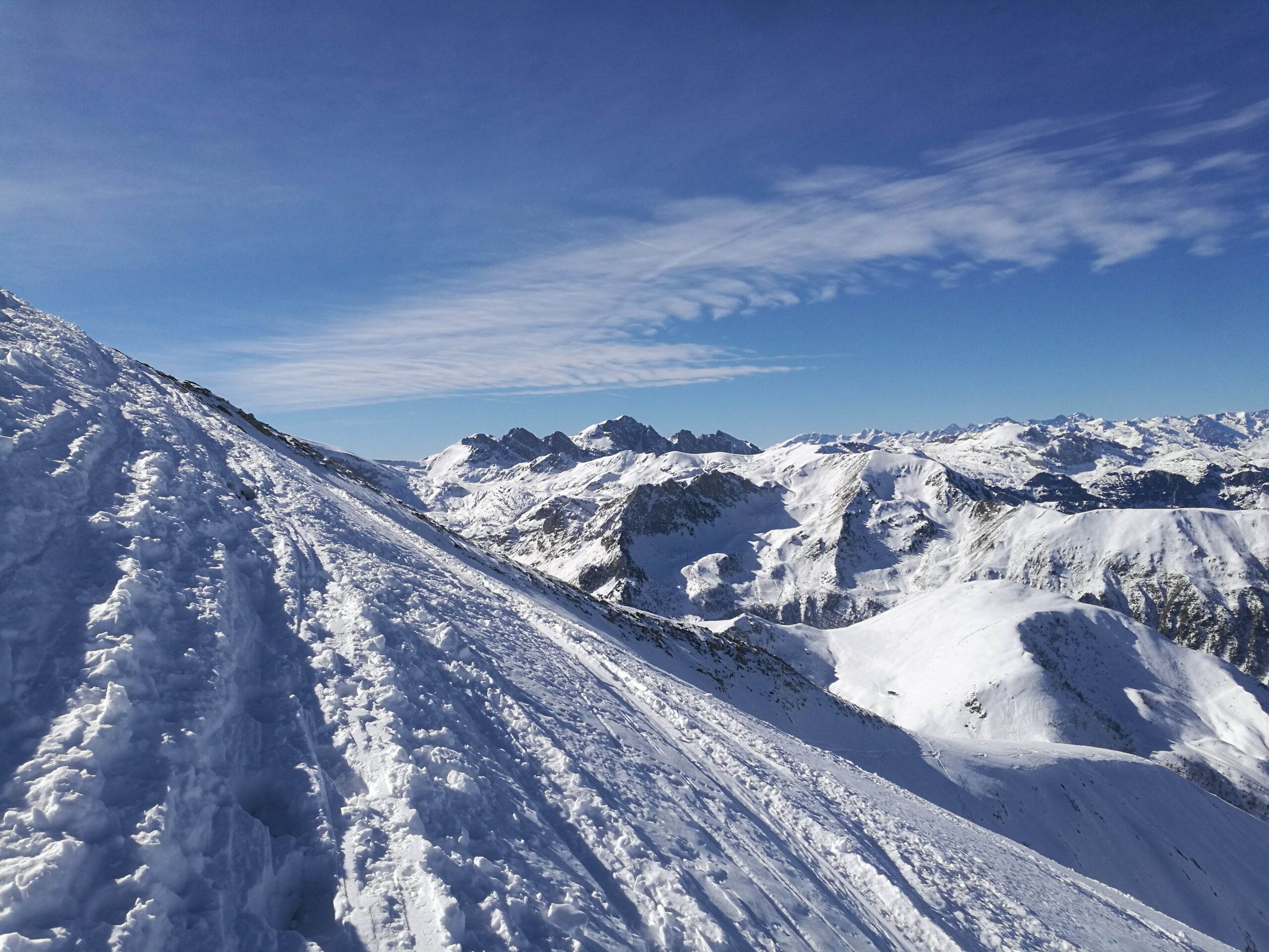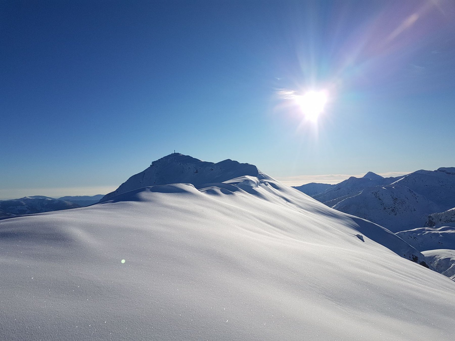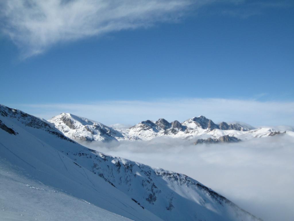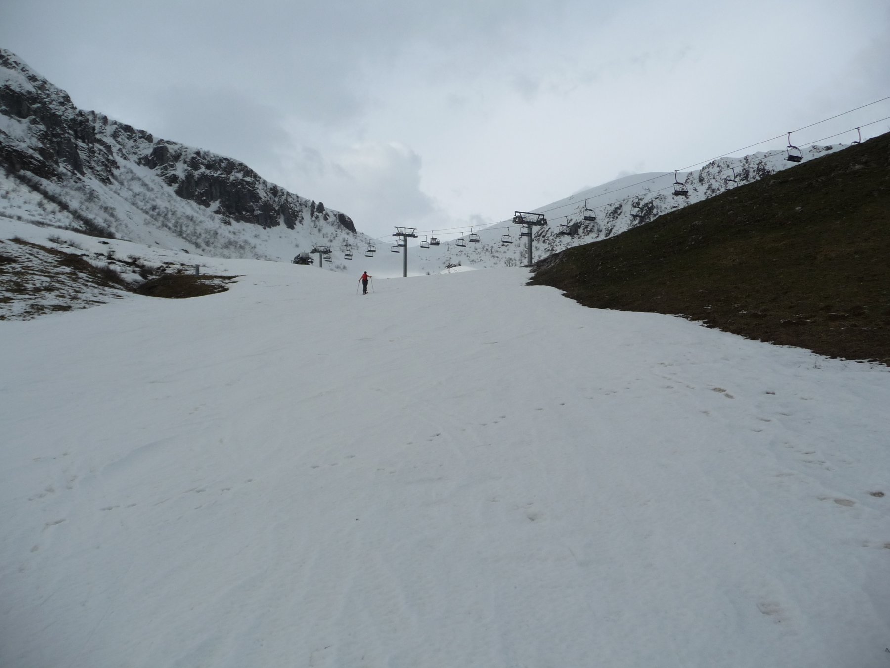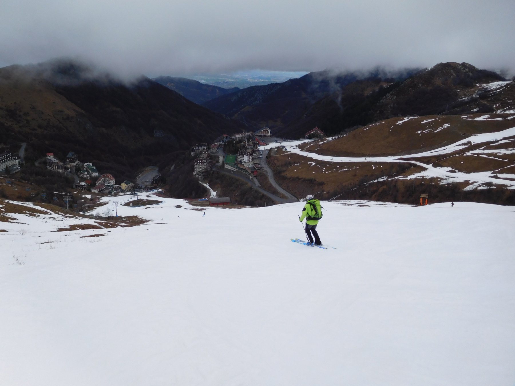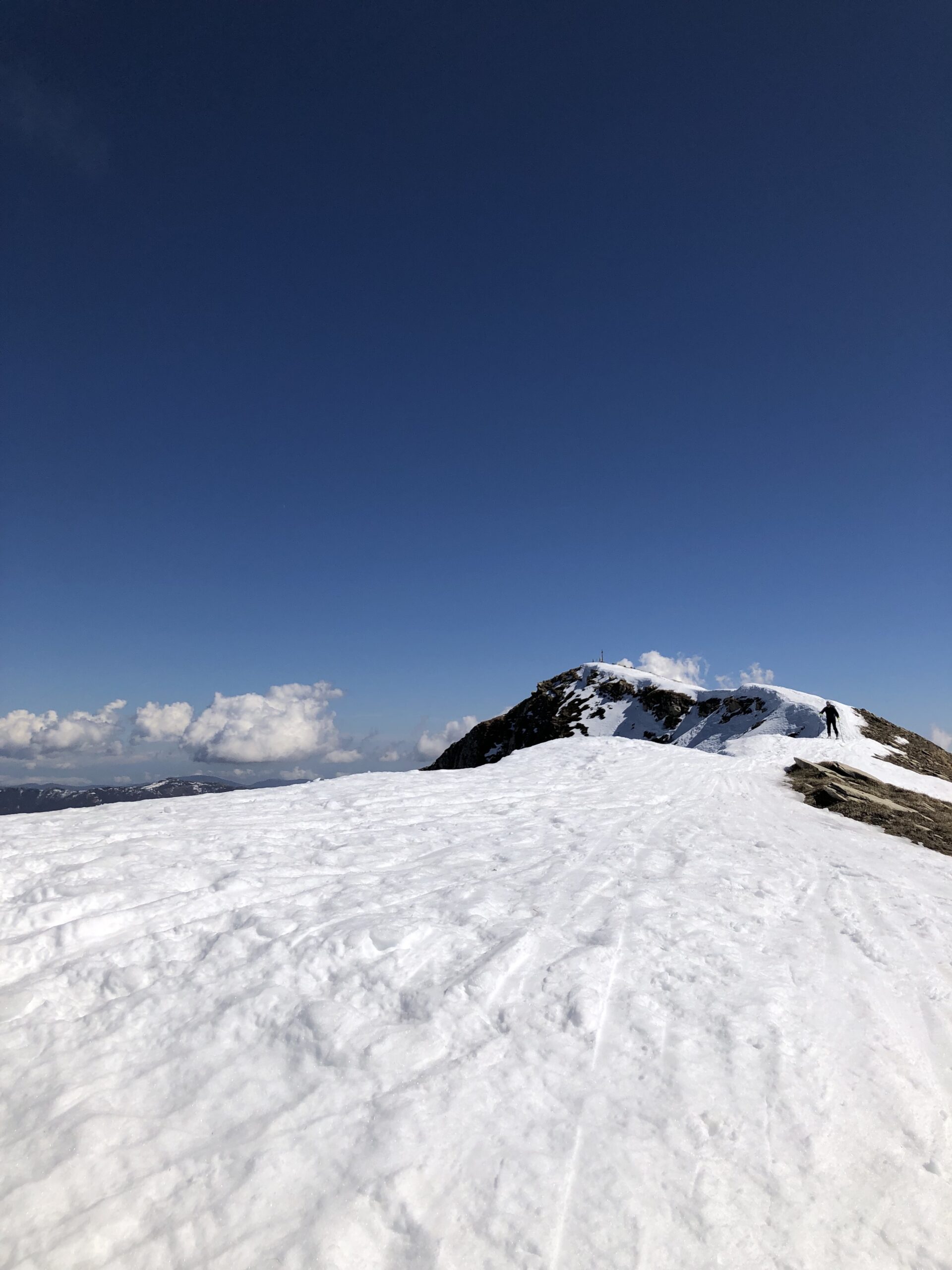 per la discesa ci sono molte varianti che vanno scelte in base all’assestamento del manto, il canalone e le varie dorsali alla sua destra o sinistra richiedono nevi ben assestate oppure si riscende dal versante di salita