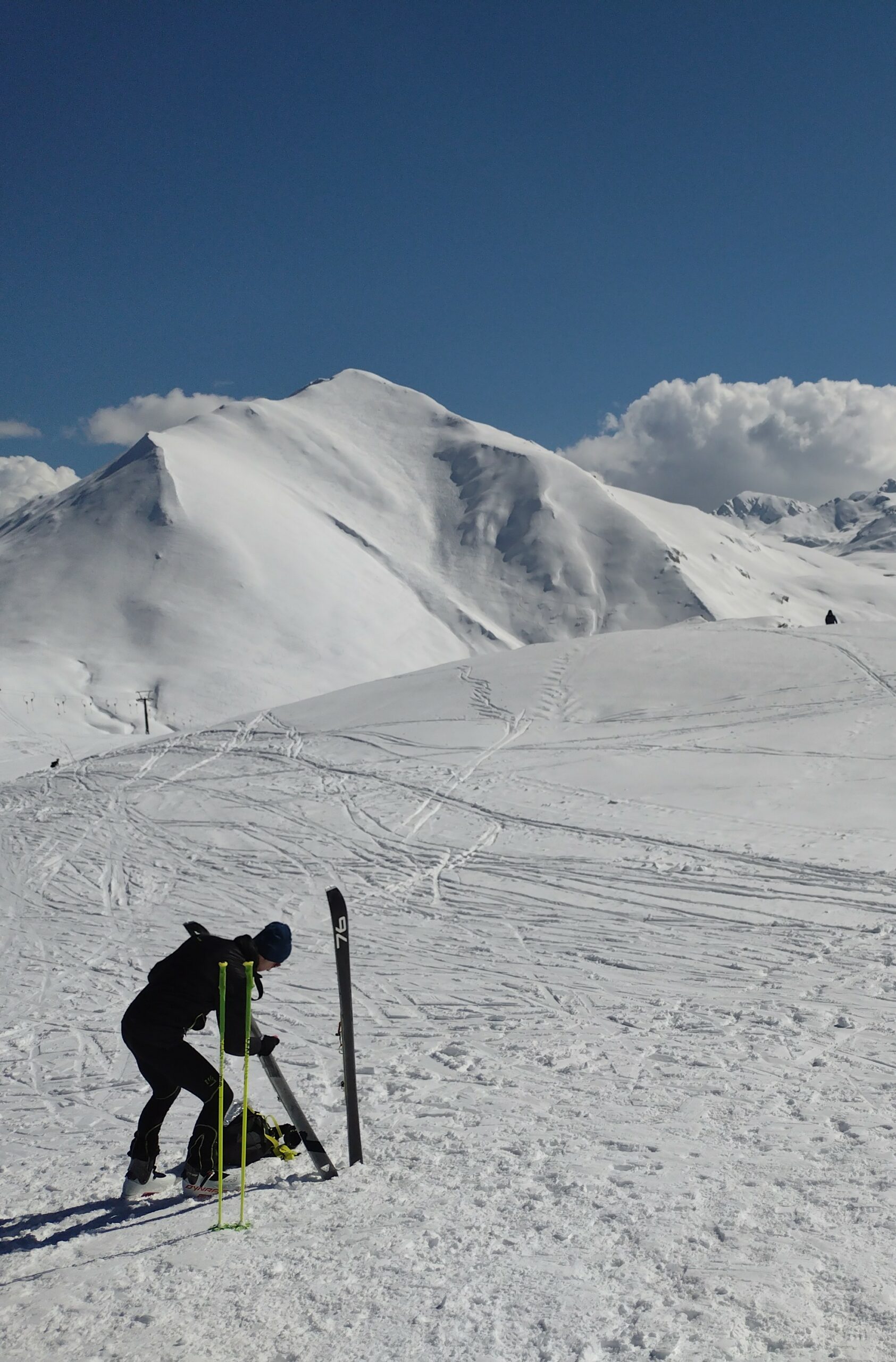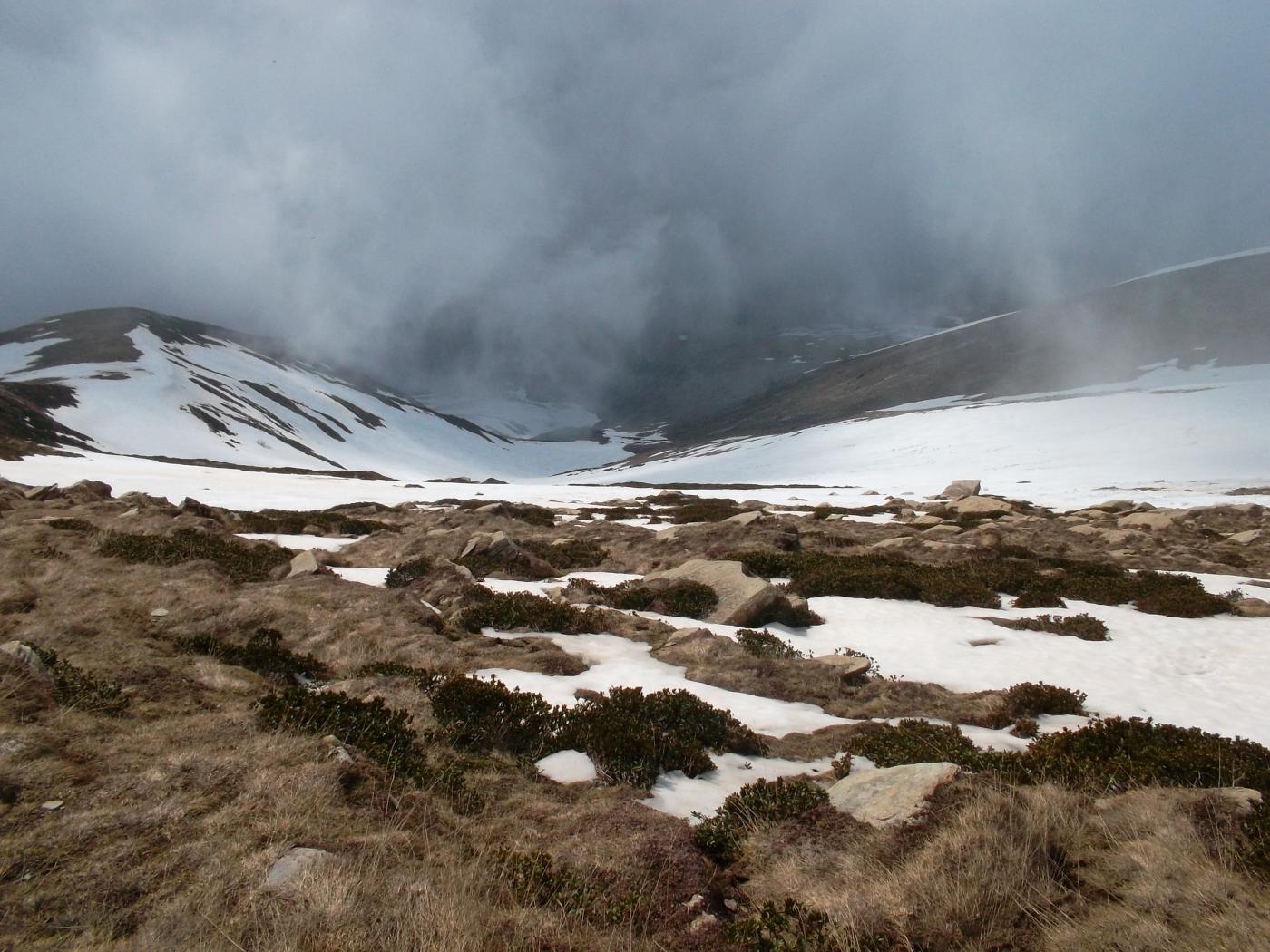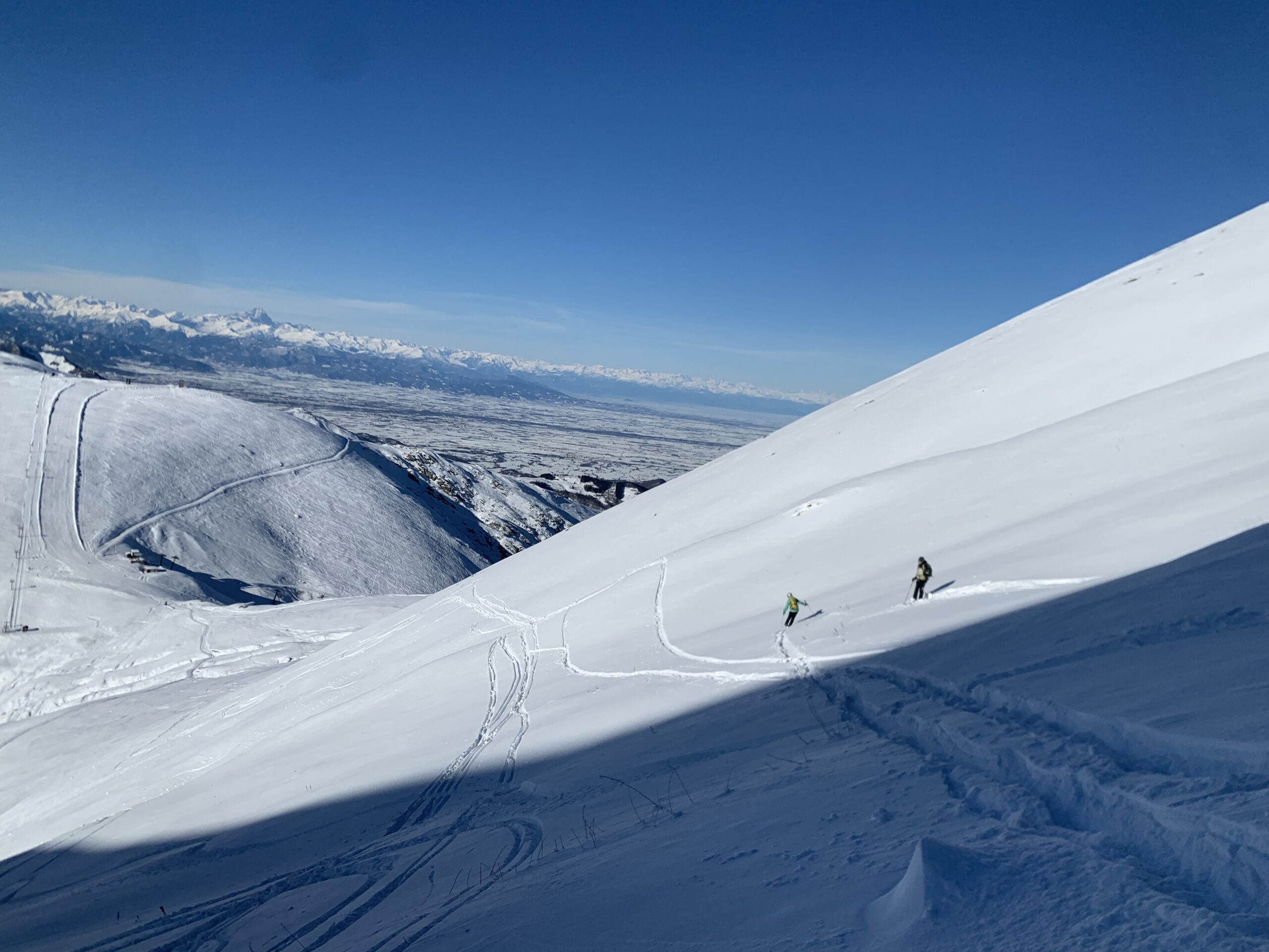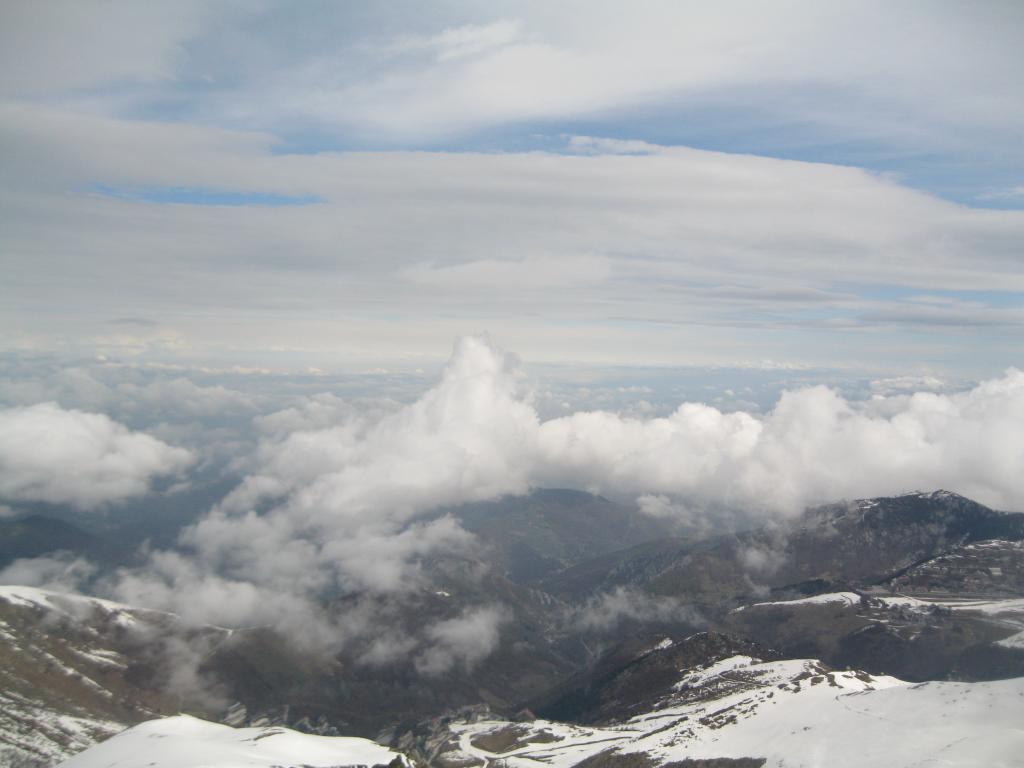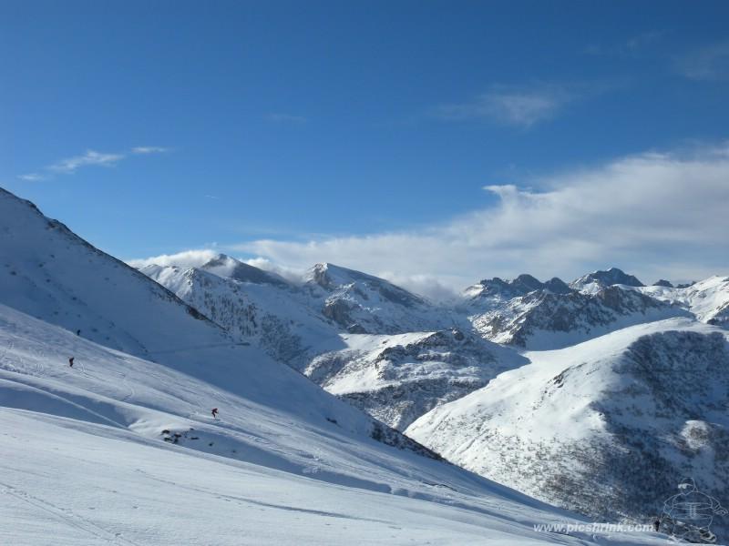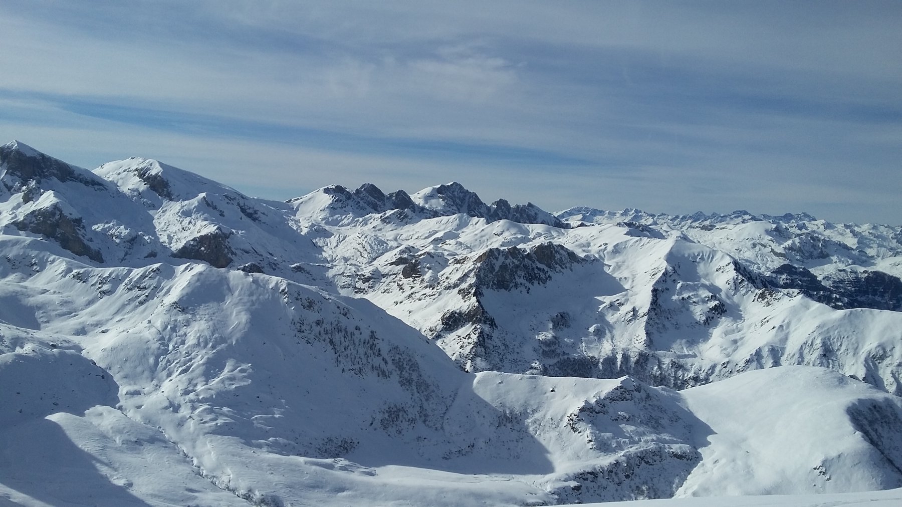 per la discesa ci sono molte varianti che vanno scelte in base all’assestamento del manto, il canalone e le varie dorsali alla sua destra o sinistra richiedono nevi ben assestate oppure si riscende dal versante di salita
