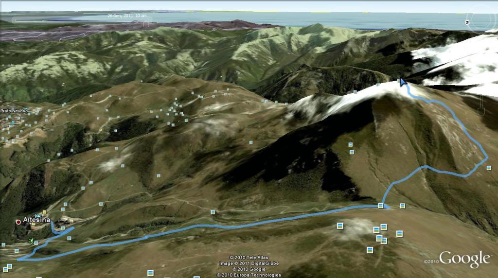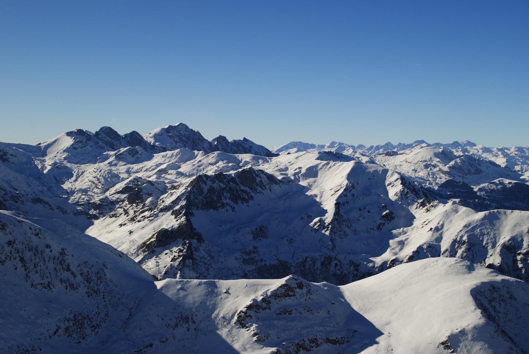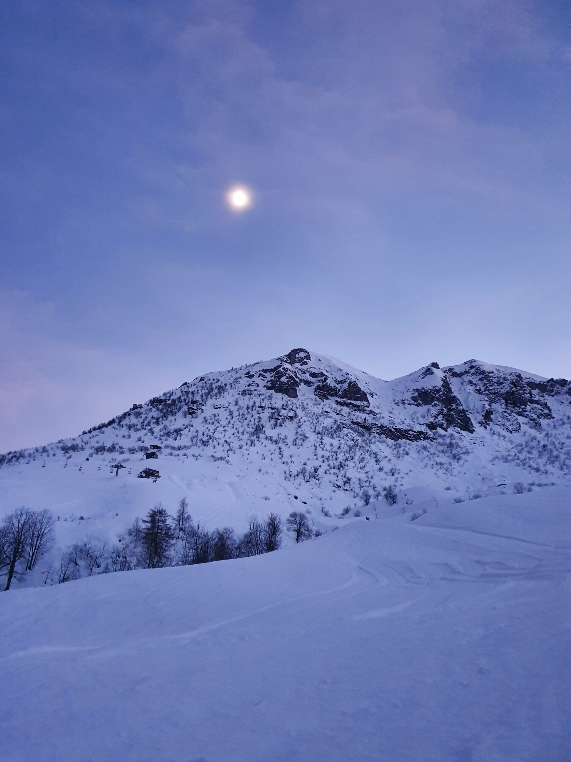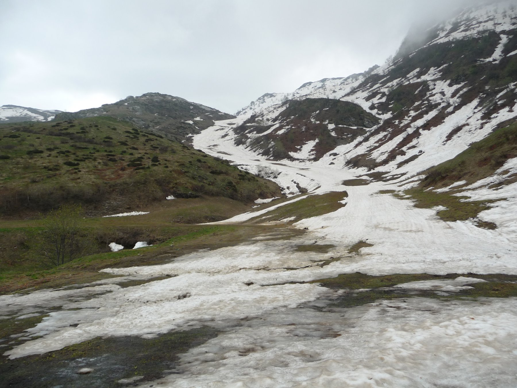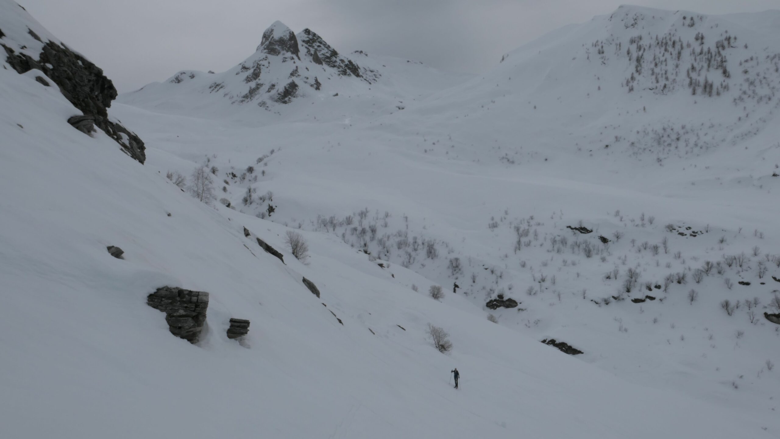 per la discesa ci sono molte varianti che vanno scelte in base all’assestamento del manto, il canalone e le varie dorsali alla sua destra o sinistra richiedono nevi ben assestate oppure si riscende dal versante di salita