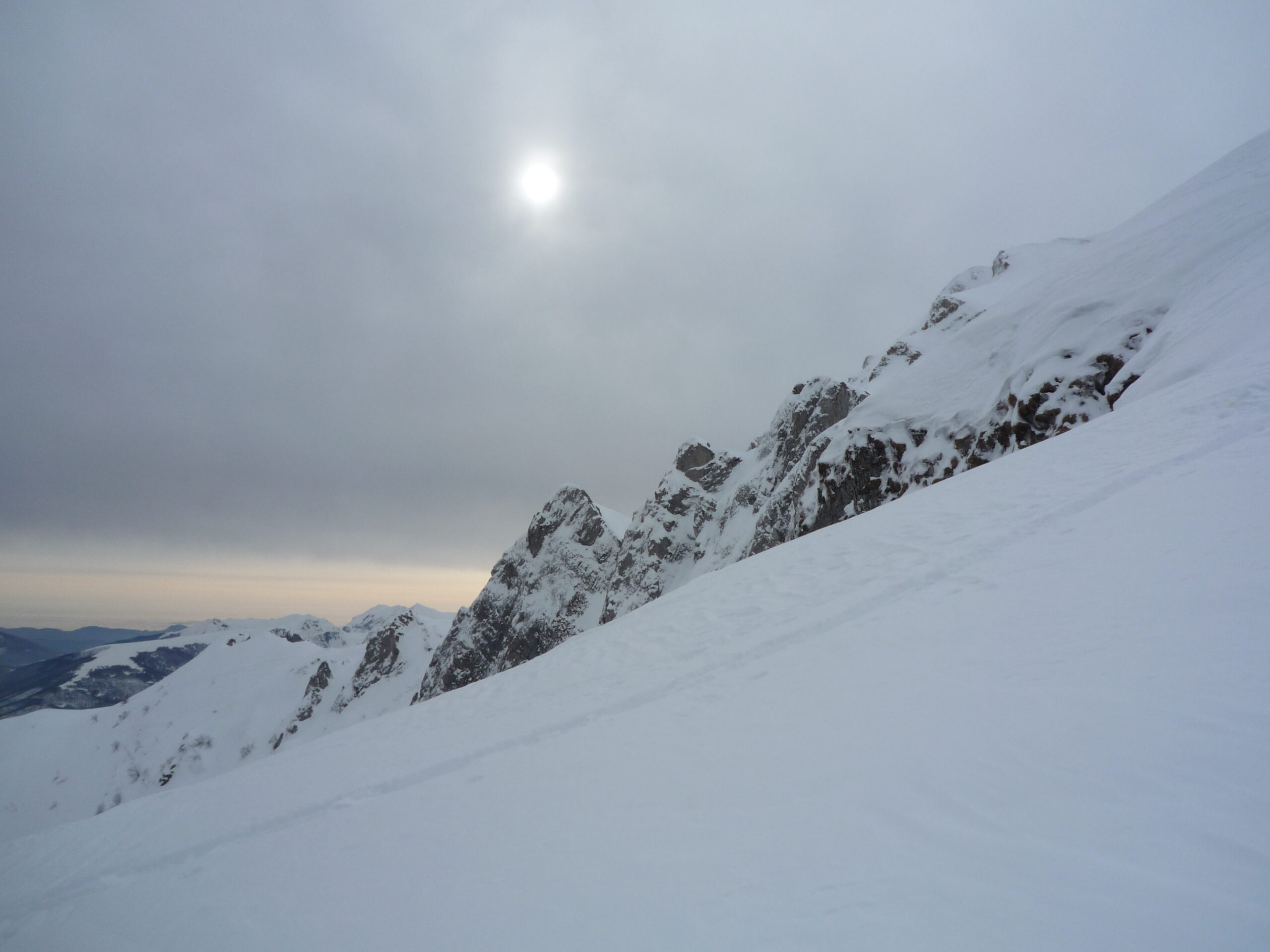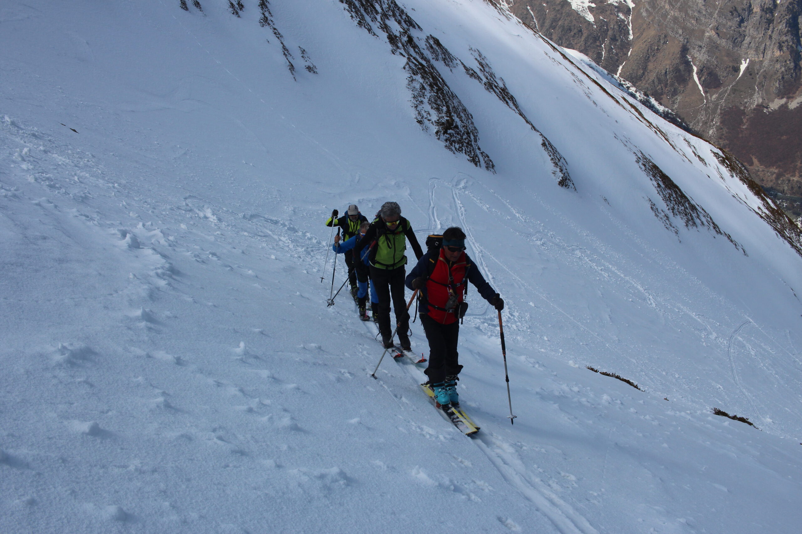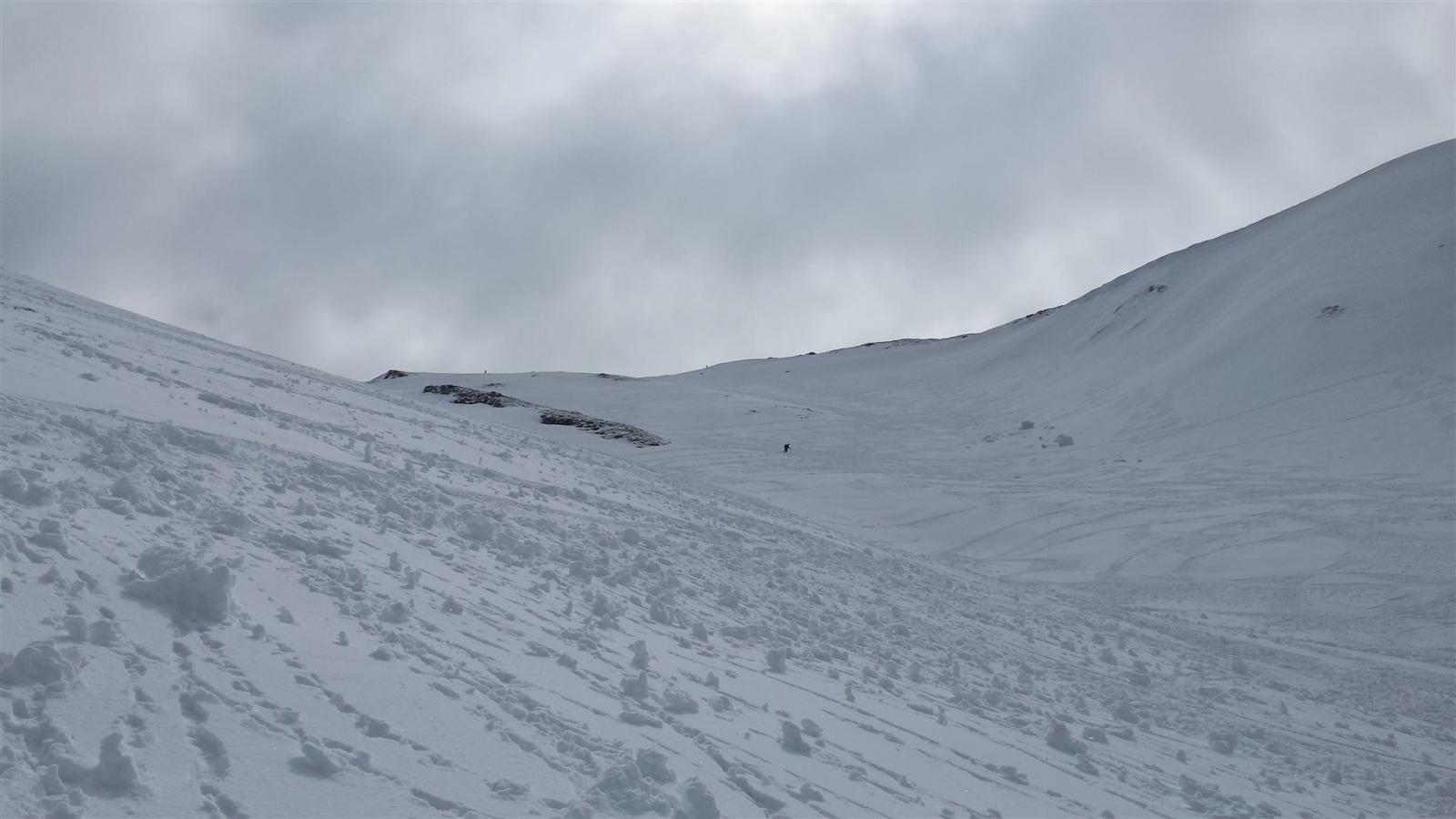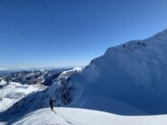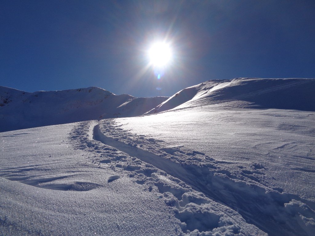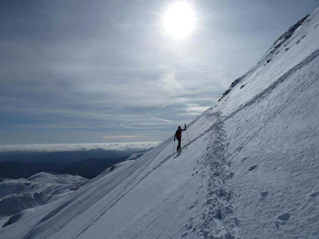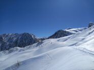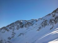 Si piega a sinistra e si risale la dorsale in massima pendenza ed entrando in parte nel canalone solo se la neve è assolutamente sicura.