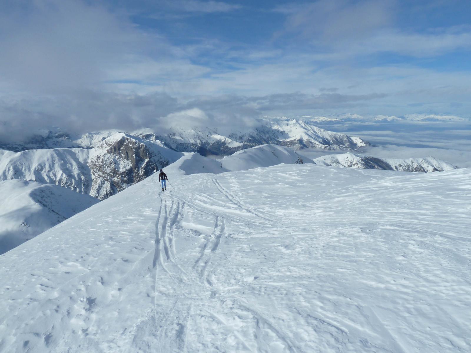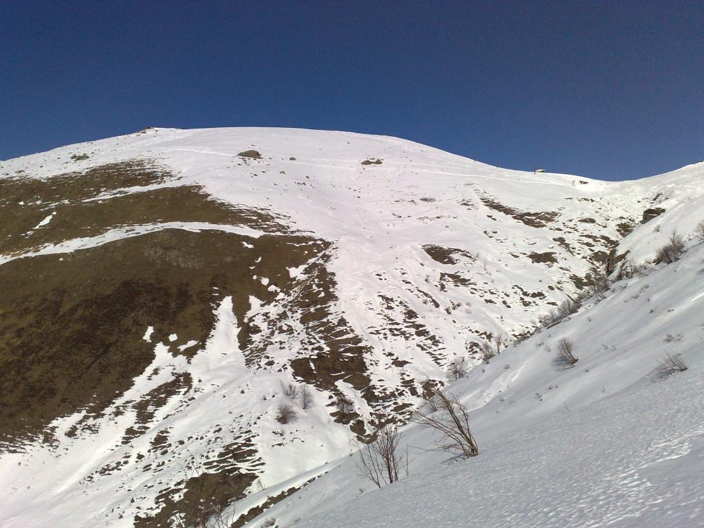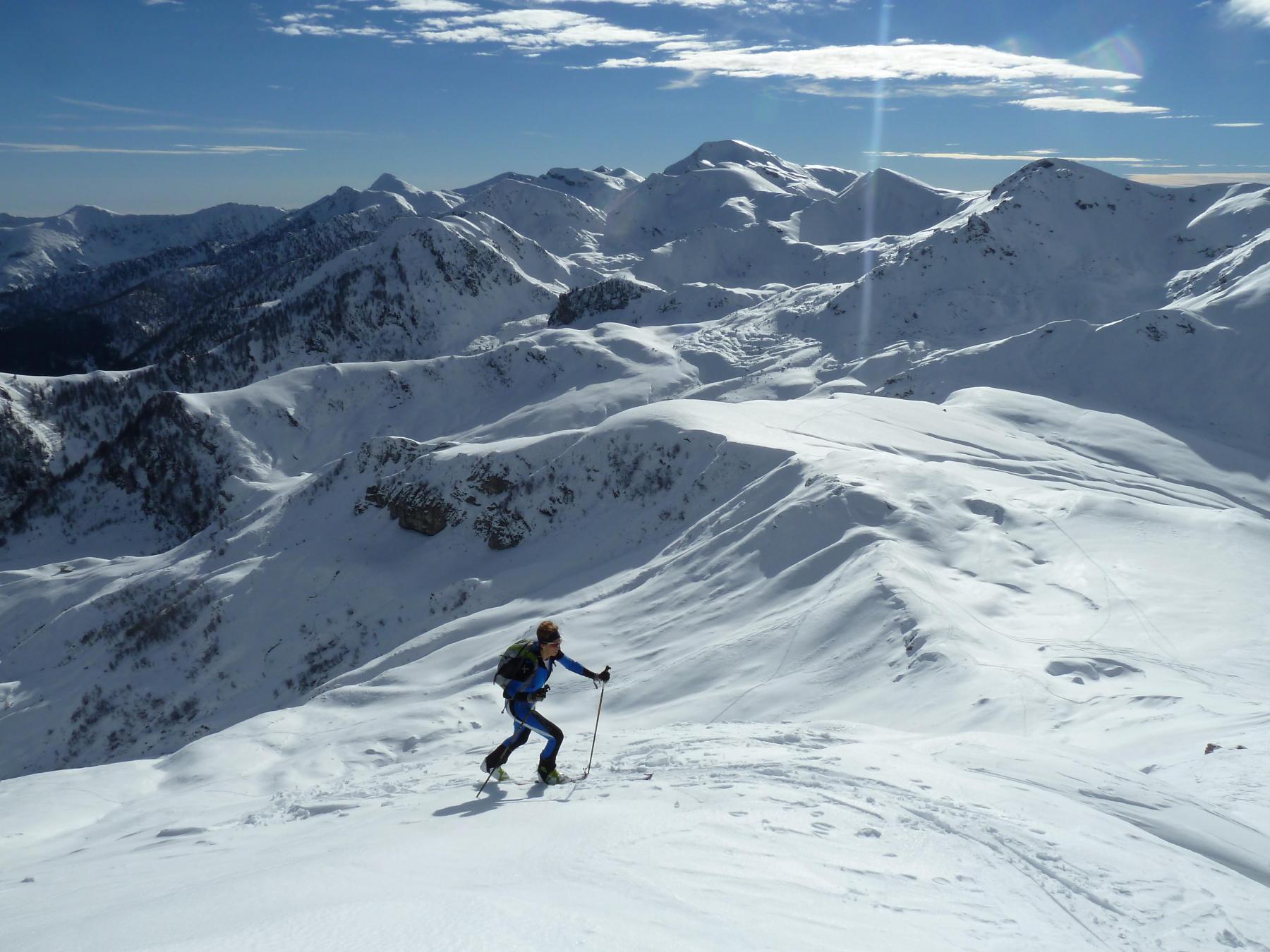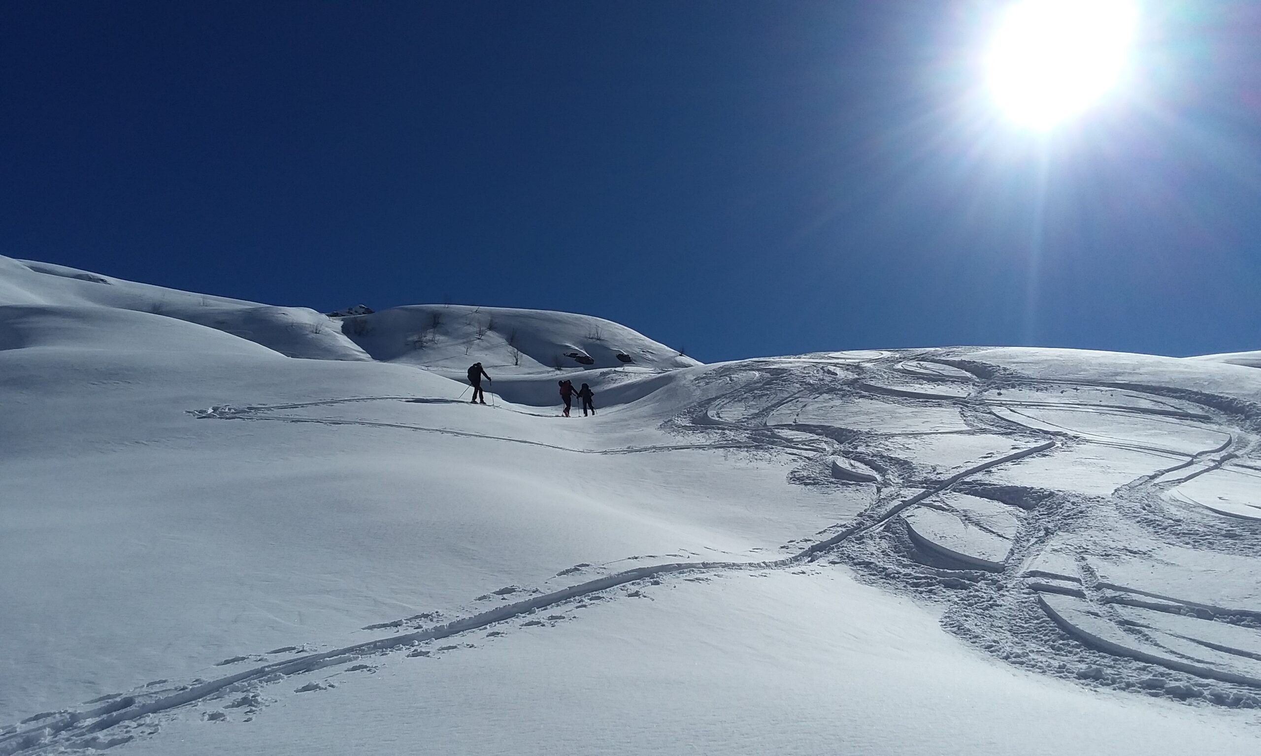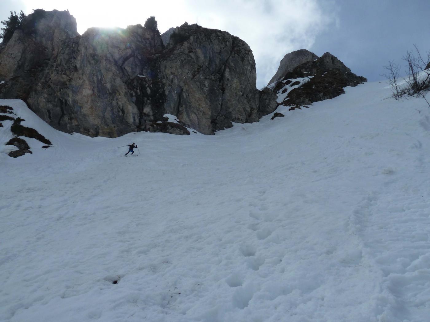 Si piega a sinistra e si risale la dorsale in massima pendenza ed entrando in parte nel canalone solo se la neve è assolutamente sicura.